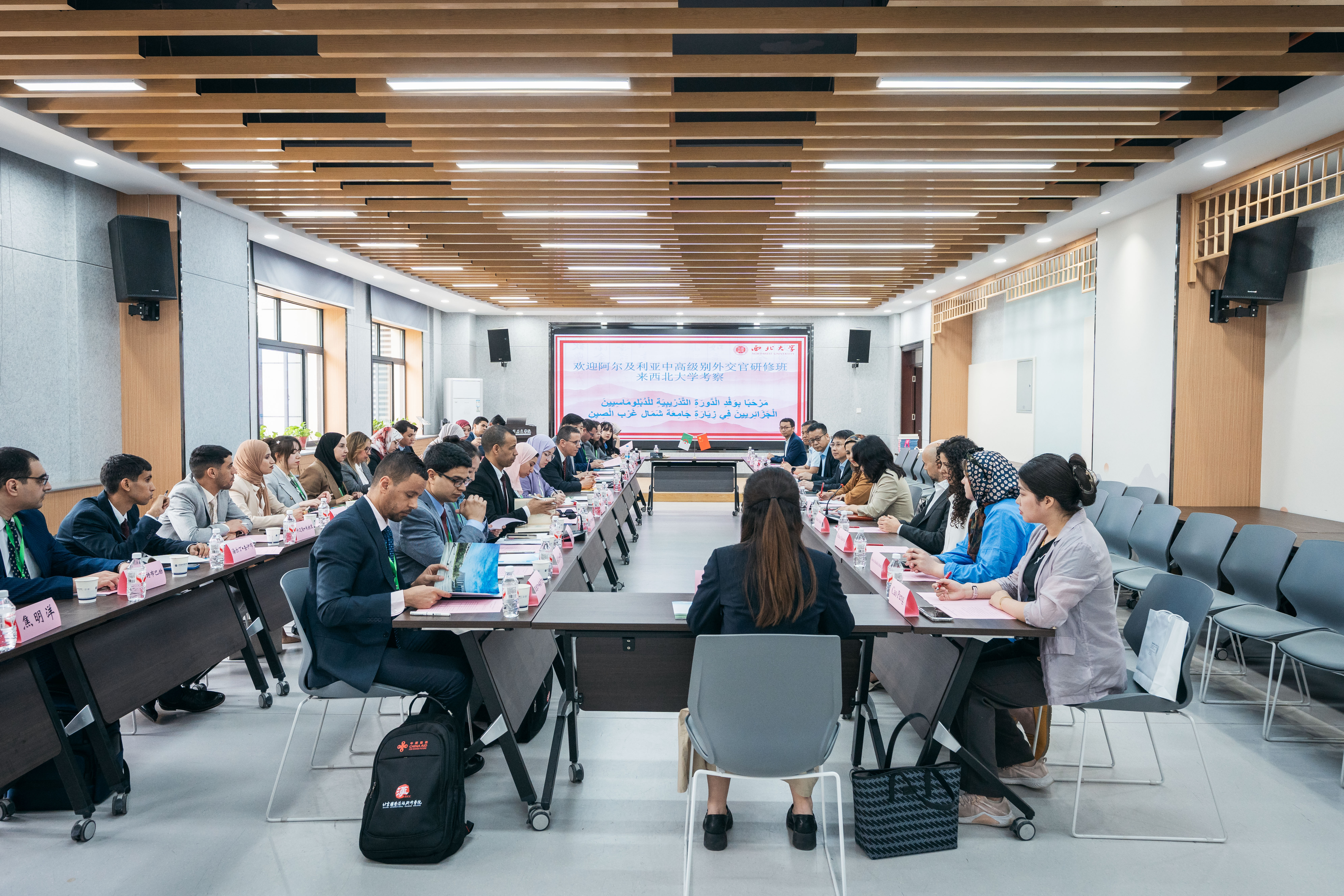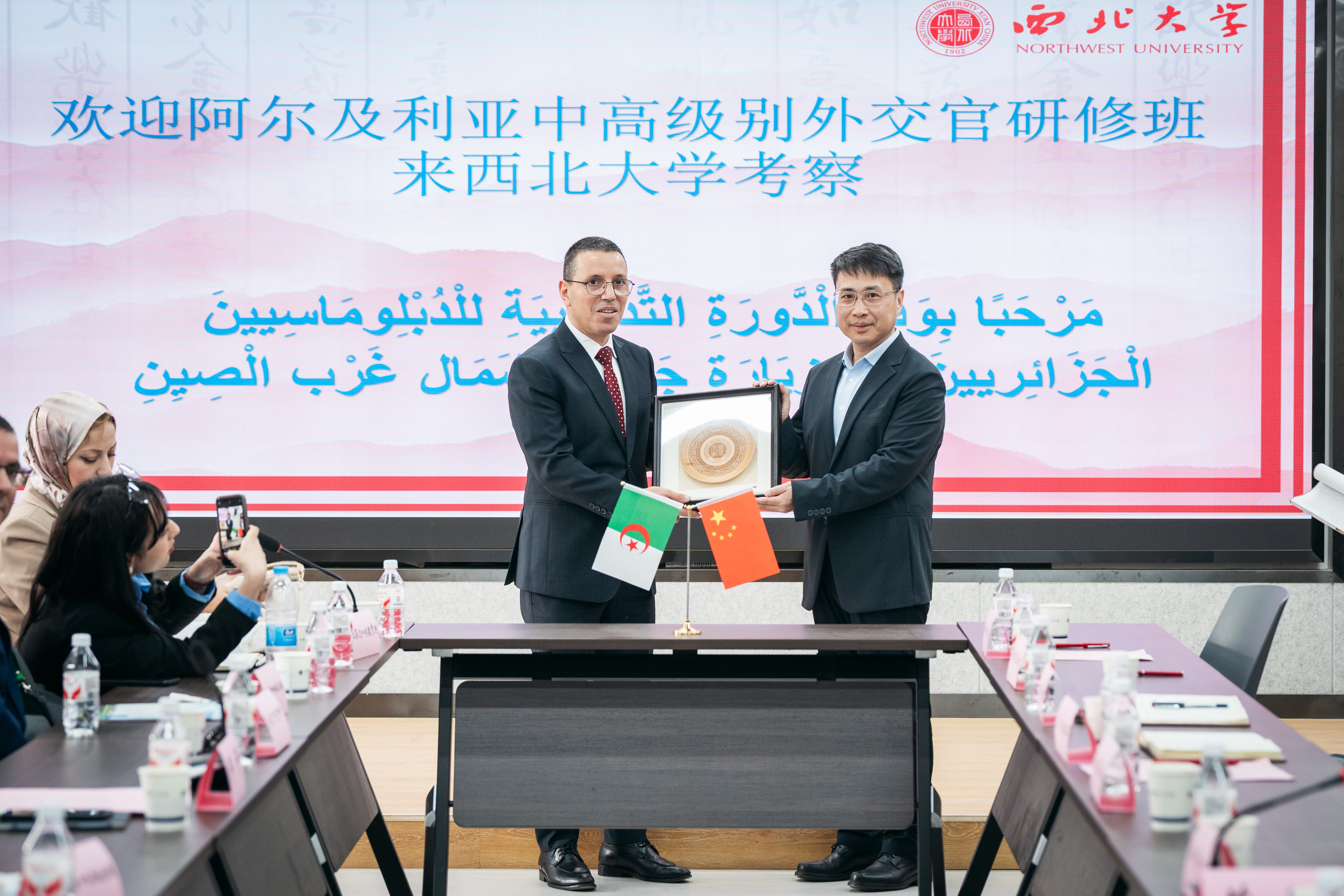 座谈会上,孙庆伟介绍了学校基本情况以及推动开放办学的相关举措和成效。他指出,近年来学校充分发挥在西亚、北非、中亚、南亚等领域的科研优势,深入推进共建“一带一路”教育行动、区域国别研究和高端智库建设,取得了显著成效和丰硕成果。他强调,学校高度重视与阿尔及利亚相关高校、机构的交流合作,依托中非合作论坛、阿尔及利亚研究中心等平台,先后达成多项合作共识,产生了广泛影响。他希望,双方以此次研修班来访为契机,进一步拓展合作领域,携手打造规格定位高、辐射能力广的长效合作平台,更好推动中阿人文交流和民心相通,为中阿命运共同体建设贡献智慧与力量。