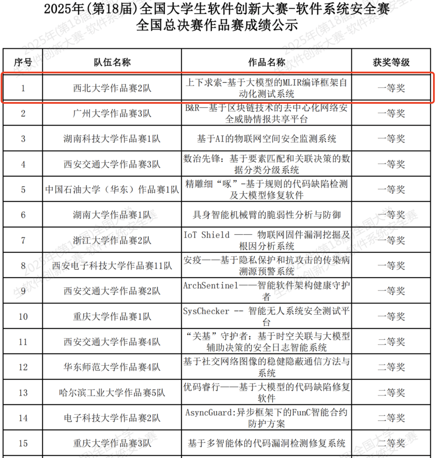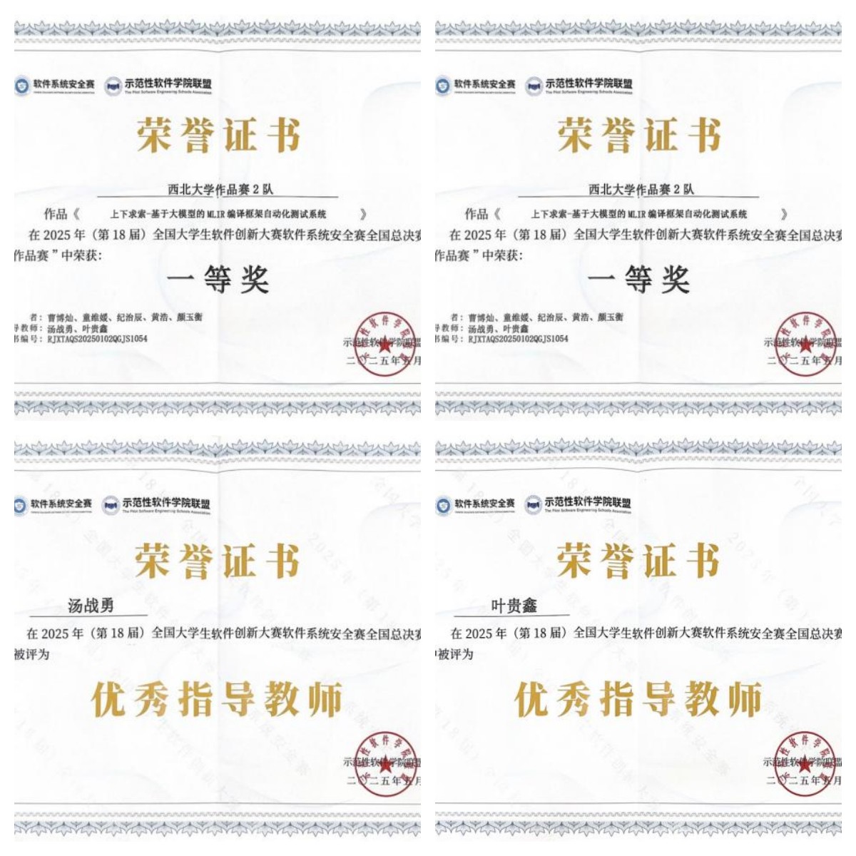 5月17日至18日,由示范性软件学院联盟主办的2025年第18届全国大学生软件创新大赛-软件系统安全赛全国总决赛圆满落幕。开云手机网页版登录入口信息科学与技术学院的两支参赛队伍从全国406所高校1780支队伍中胜出,分别摘得作品赛一等奖第一名、攻防赛二等奖的佳绩。汤战勇和叶贵鑫荣获“优秀指导教师一等奖”。