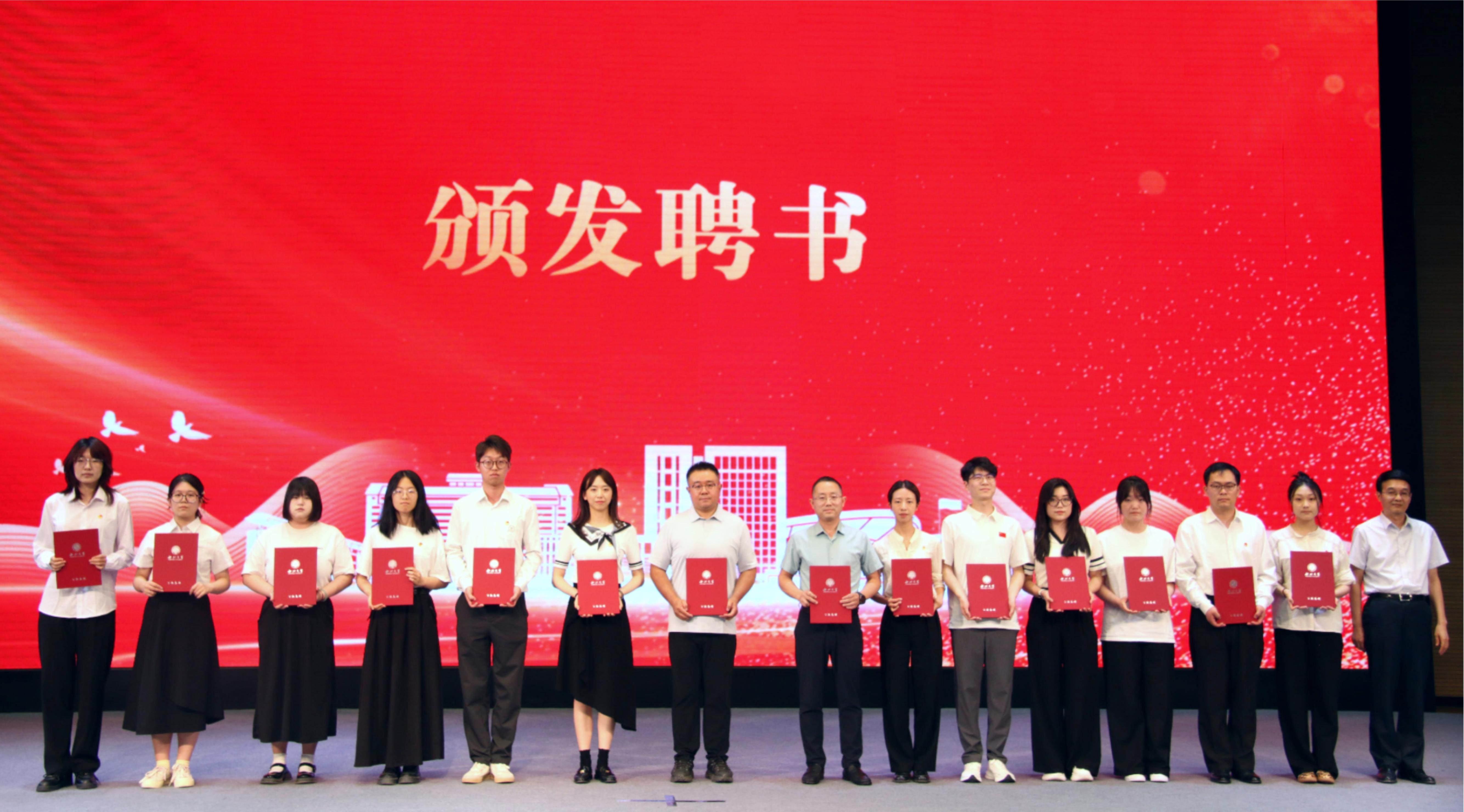 会上,校团委负责人代表第二十一届委员会汇报了2024年度开云手机网页版登录入口共青团工作。“最学霸”获得者、外国语学院本科生应心怡,“最文艺”获得者、文学院本科生殷志豪,“最创新”获得者、化学与材料科学学院研究生赵圆利,五星级团支部代表、生命科学学院2022级基地班团支部书记王弘靖,优秀专职团干部、经济管理学院团委副书记杨世攀等作为“榜样青年”,向与会师生分享了学业、校园文化、创新实践、支部建设、社会实践等方面的成长经历和收获。