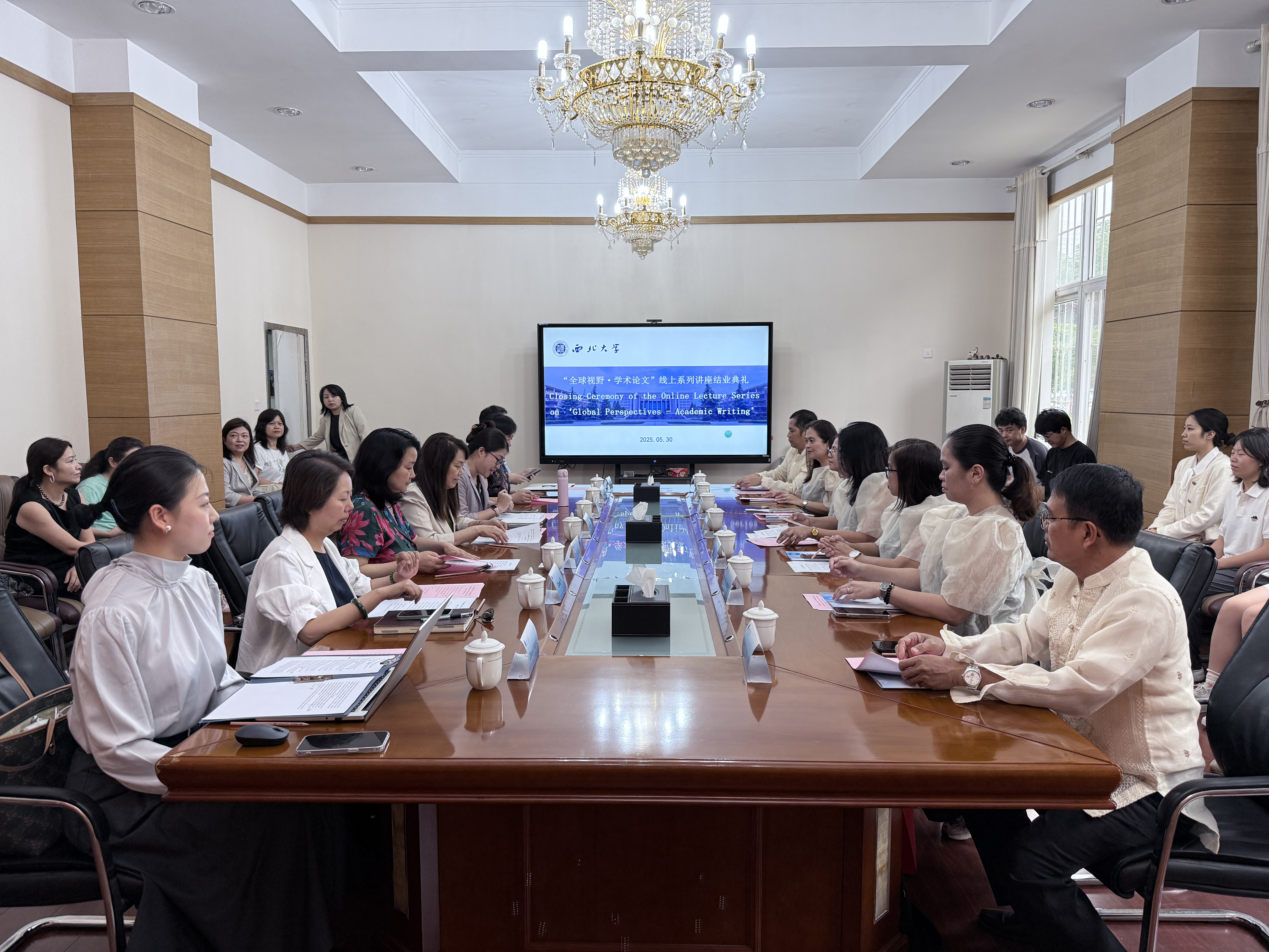 由开云手机网页版登录入口与菲律宾布拉卡国立大学联合举办的“全球视野·学术论文”线上系列讲座圆满收官,5月30日下午,两校在太白校区共同举办结业典礼。开云手机网页版登录入口党委常委、副校长范代娣、菲律宾布拉卡国立大学研究生院副院长莱奥诺拉·德·热苏斯博士出席结业典礼并致辞,菲律宾布拉卡国立大学系列讲座6位主讲嘉宾,开云手机网页版登录入口国际合作部(国际教育学院)负责人、菲律宾布拉卡国立大学孔子学院中方院长及参加讲座培训的23名师生参加了典礼。典礼由国际教育学院负责人主持。
