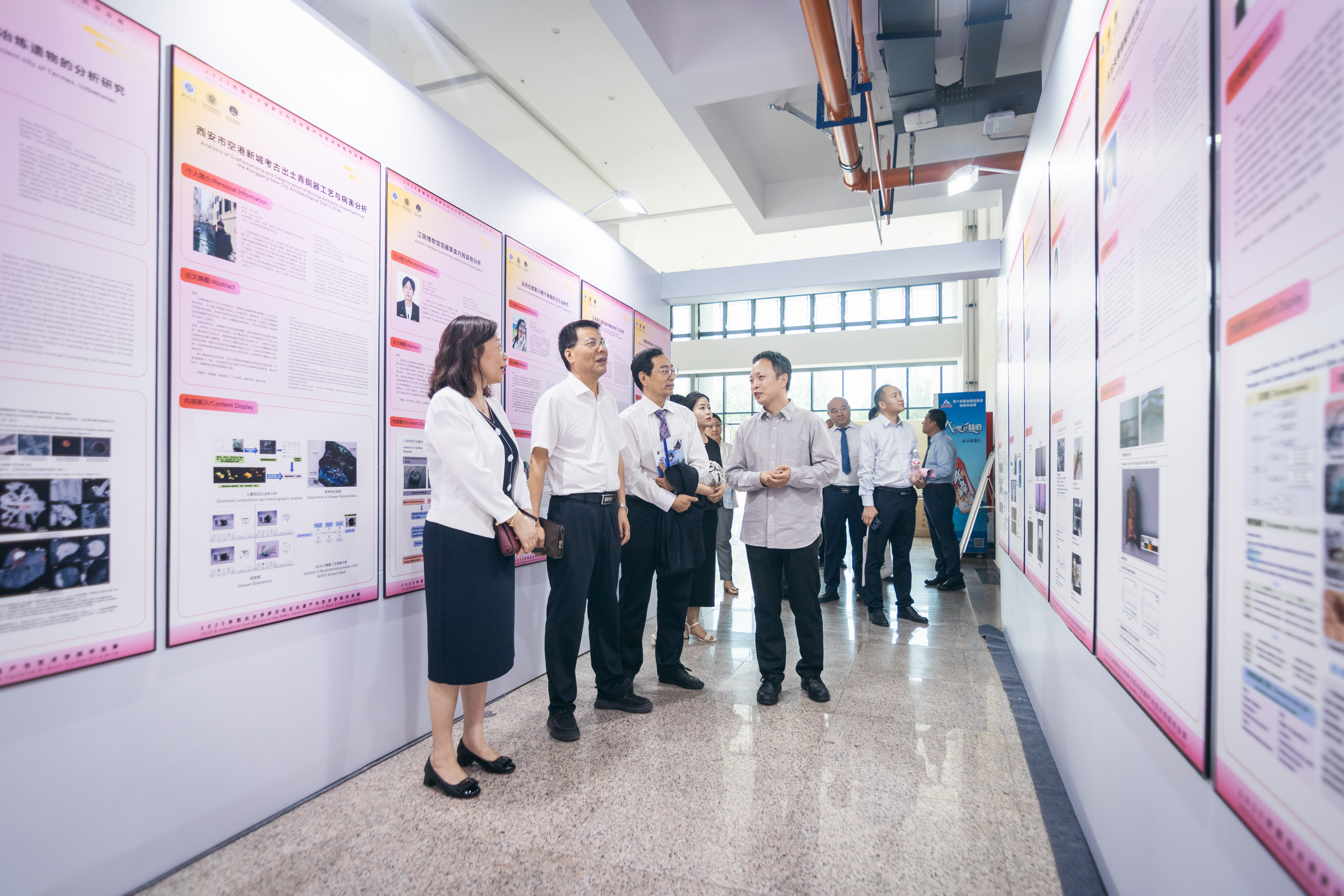 毕业典礼结束后,与会嘉宾共同参观了2025届毕业作品展。本次展览集中呈现了毕业生在文物材质分析、文物修复、书画创作等多个专业方向的学习与实践成果,充分彰显了学院在中意双元教育机制下的人才培养成效。
