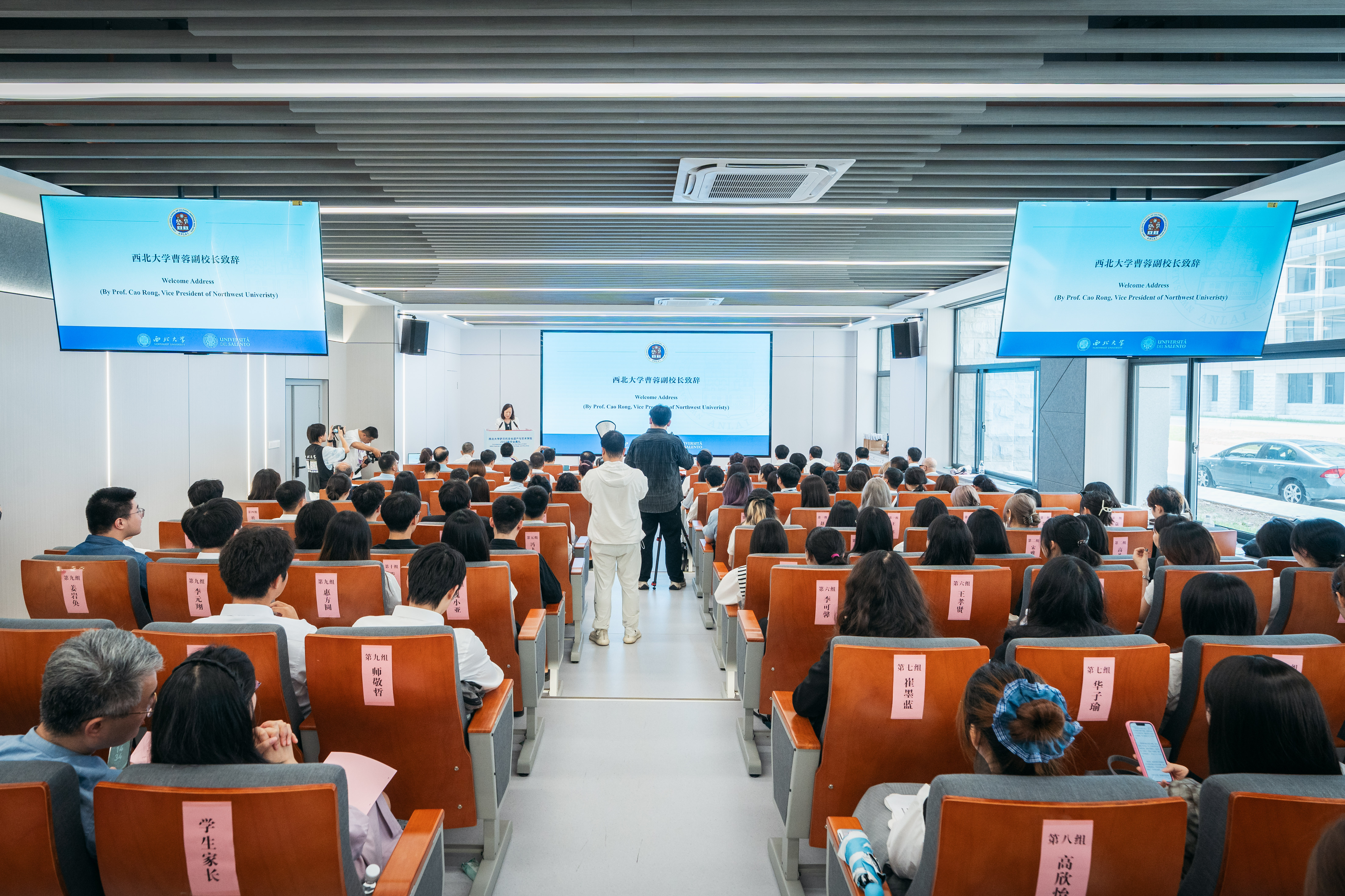副校长曹蓉,意大利萨兰托大学校长特别代表、文化遗产系主任杰罗拉莫·菲奥伦蒂诺,陕西历史博物馆党委副书记李树青,陕西省考古研究院总工程师李建西,陕西省文物保护研究院副院长韩建武,西安市文物保护考古研究院党委书记刘文平,长安画派艺术中心主任王锐,陕西省美术博物馆副馆长马卫民等省内文博单位负责人,西安鼎铉文化遗产保护有限公司总经理刘存良、西安元智系统技术有限责任公司副总经理李红梅等企业界代表,以及学校相关职能部门和院系负责人、中意两校任课教师代表、学生家长代表、安莱学院全体教职工、2025届全体毕业生及其他年级学生代表出席活动。
