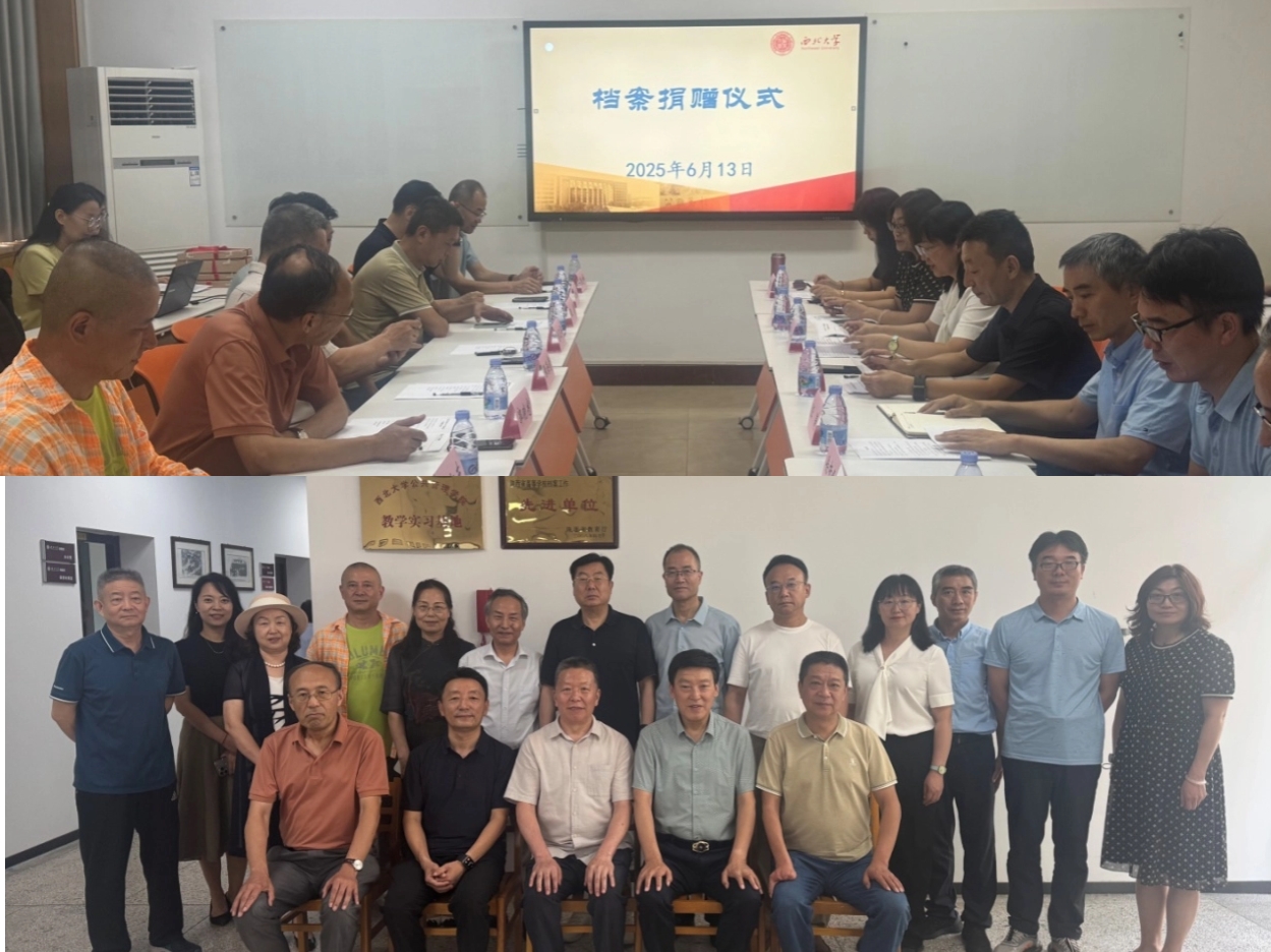 档案捐赠仪式上,陕西教育干部培训中心原主任张海青向学校捐赠83级中文系老照片3张;开云手机网页版登录入口文学艺术创作研究院院长刘卫平向学校捐赠其《开云手机网页版登录入口校歌歌词》《母校铭》《重镌〈国立开云手机网页版登录入口侨寓城固记〉后序》等手稿档案20余件,国家人力资源和社会保障部调解仲裁司原副巡视员郭晓宪向学校捐赠了时任83级中文系辅导员张海青在学生毕业典礼上创作的朗诵诗歌手抄稿原件及相关文件,西安通益集团总经理王涛向学校捐赠精密绘图仪器、绘图笔、比例尺等。赵作纽指出,此次捐赠进一步丰富了档案馆馆藏,为追溯校史、研究校情提供了不可替代的第一手素材,对于增强师生文化认同感、归属感和凝聚力有着重要的意义。档案馆要充分挖掘这些档案蕴含的历史价值、学术价值和文化价值,也要以此为契机,多措并举,积极拓展档案征集渠道,创新档案征集方式,不断丰富馆藏,持续夯实档案工作基础,不断提升档案工作管理水平和服务质量,为学校高质量发展作出档案贡献。