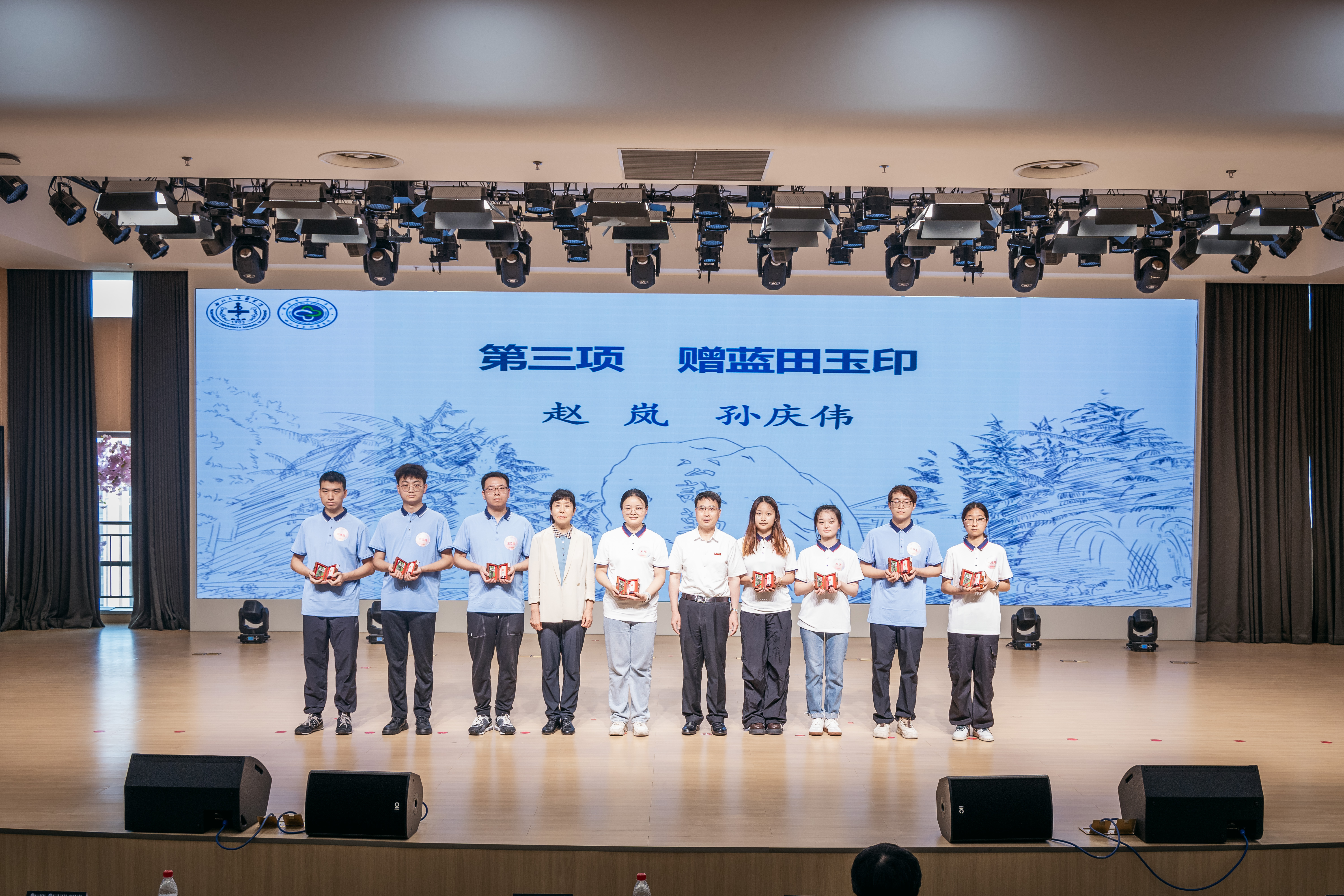 赵岚、孙庆伟向毕业生颁发蓝田玉印章,送上开云手机网页版登录入口独有的一份温暖情怀,激励同学们秉承“公诚勤朴”校训,敬佑生命,知行合一,勇担健康使命,做大国良医。
