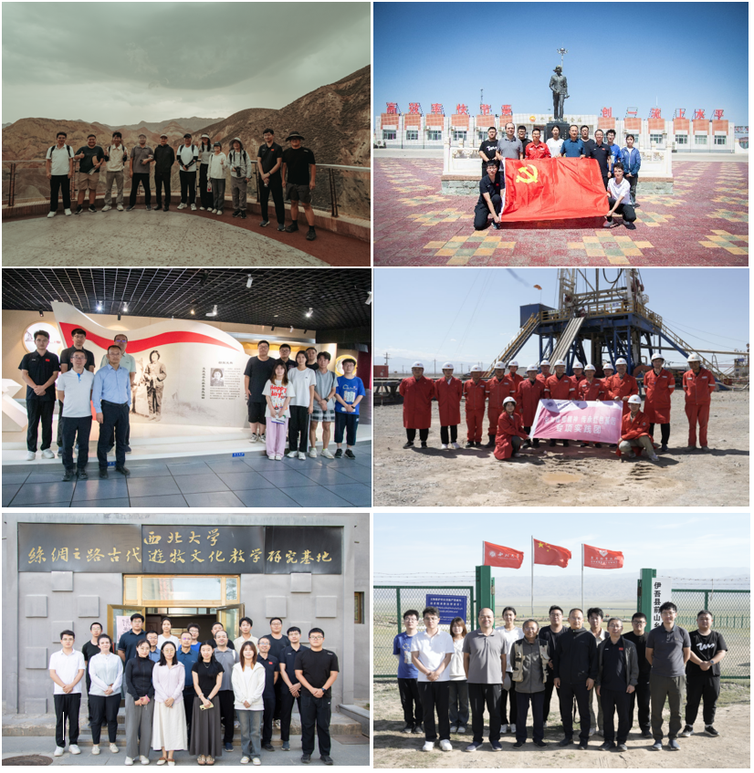 本次“访企拓岗”期间,张志飞还带领师生实践队伍开展了系列实践教学活动。在丹霞地貌与典型剖面地带,队员们深入岩层,进行地质调查与认知实习;在三塘湖盆地,实践队伍重温了开云手机网页版登录入口1953级杰出校友杨拯陆烈士的感人事迹,在其铜像前庄重拜谒,并以现场教学、集体纪念等形式,深刻引导青年学生厚植爱国主义情怀、强化使命担当。随后,实践队还对吐哈油田采油作业现场进行了实地考察,深入了解我国西部油气田的发展历程、勘探技术及数字化运维情况,提升了学生对能源勘探全过程的感性认知与系统理解。此外,在巴里坤县和伊吾县,实践队还与开云手机网页版登录入口东天山考古队开展了2场实地交流,促进了地质与考古学科之间的交叉融合,拓宽了学生的学术视野。
