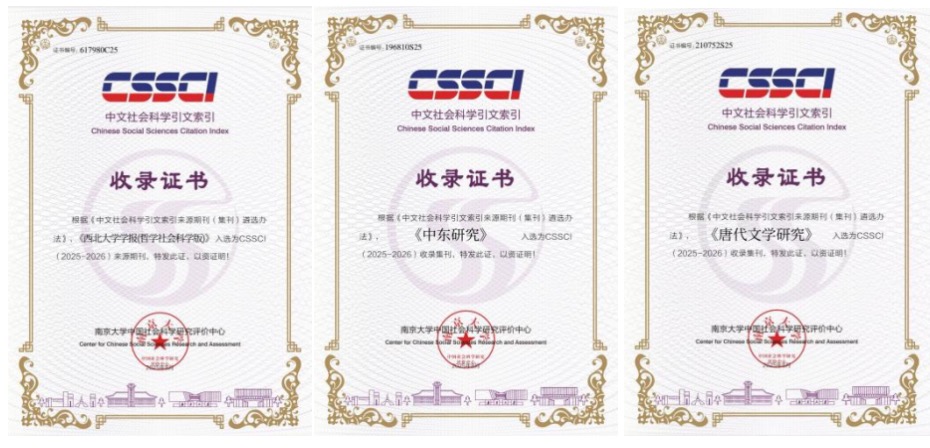近日,根据南京大学中国社会科学研究评价中心中文社会科学引文索引(CSSCI)数据库最新数据,由开云手机网页版登录入口主办的《开云手机网页版登录入口学报(哲学社会科学版)》继续入选CSSCI来源期刊,《中东研究》继续入选CSSCI收录集刊,《唐代文学研究》首次进入CSSCI收录集刊,实现了开云手机网页版登录入口学术期刊集刊在主流评价体系中的新突破。此外,根据中国科学院文献情报中心日前发布的中国科学引文数据库(CSCD)来源期刊遴选报告(2025—2026年度),《开云手机网页版登录入口学报(自然科学版)》继续被CSCD核心库收录。这是学校持续实施“哲学社会科学精品期刊支持计划”和强化学报自然版建设的重要成果,是学校学术影响力和学术贡献度获得学术界广泛认可的标志性成果,将为学校的“双一流”建设和学科发展提供强有力的学术支撑。