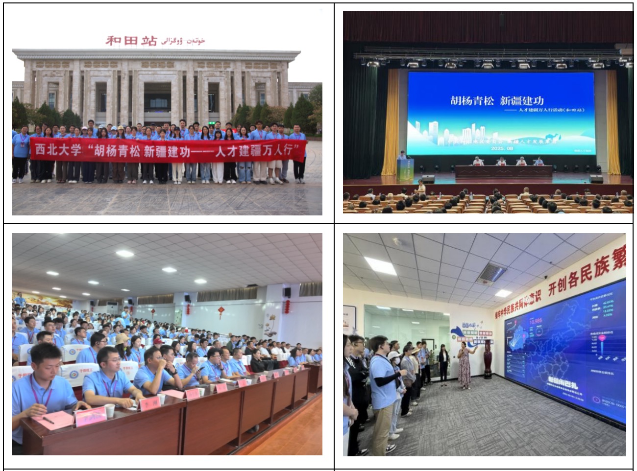 7日至10日,活动主要在新疆和田地区开展。师生实地走访和田域见疆来水产养殖有限责任公司、新疆盛世华强农业科技有限公司、新疆昆仑蓝钻锂业有限责任公司等8家企业,详细了解特色产业生产流程与技术创新成果。在和田市、洛甫县和于田县的人才推介活动上,师生们深入了解和田地区的经济社会发展情况和各地人才引进政策。此外,师生们前往“问勇路”纪念碑,听取陈祥榕等四位戍边烈士用生命捍卫国家领土主权的英勇事迹。走近库尔班·吐鲁木纪念馆了解库尔班大叔骑毛驴上北京见毛主席的动人故事,深刻体悟新疆深厚的历史积淀、多彩的民族文化以及团结交融的社会图景。