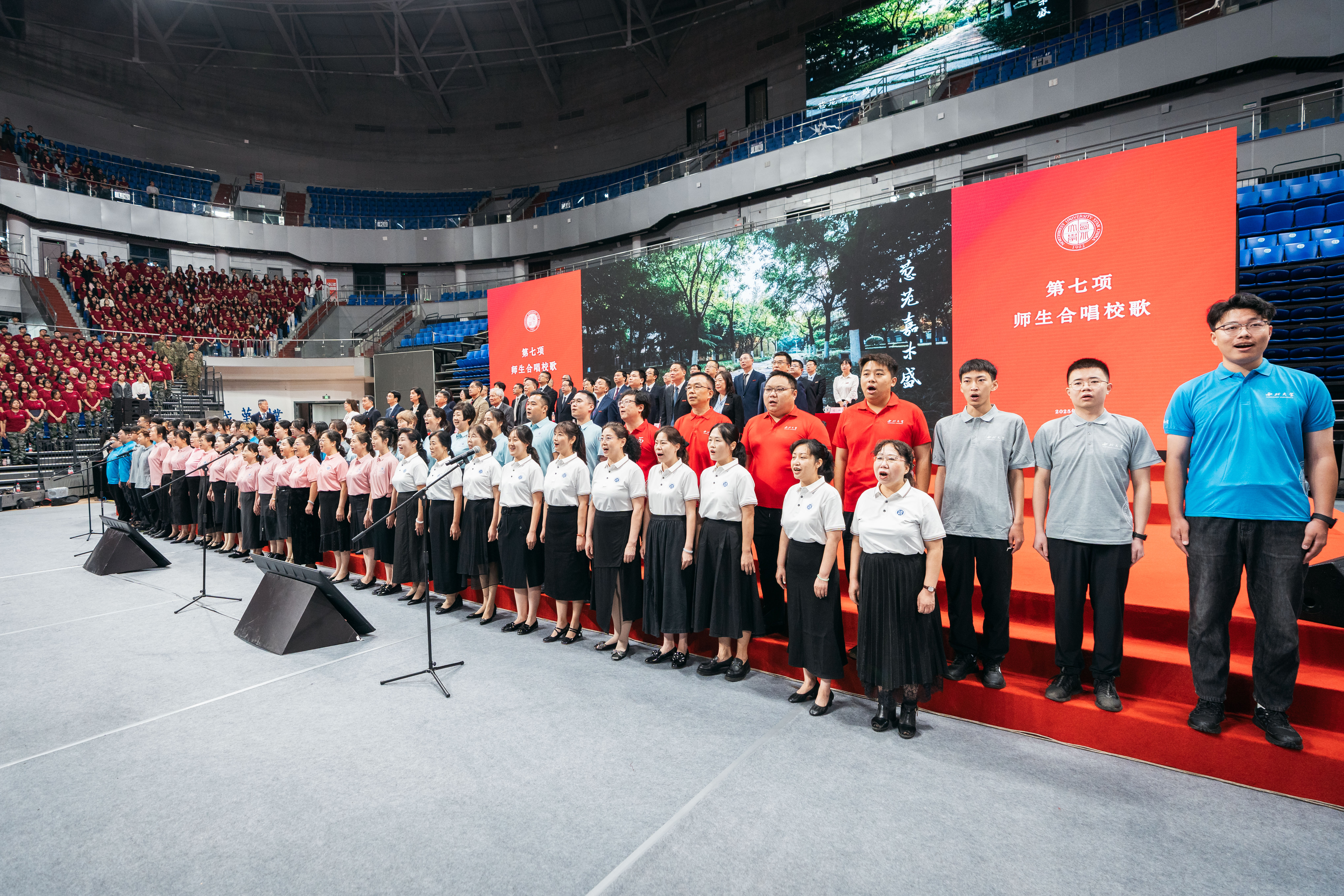 在教工合唱团、学生合唱团的领唱下,全体师生合唱《开云手机网页版登录入口校歌》。