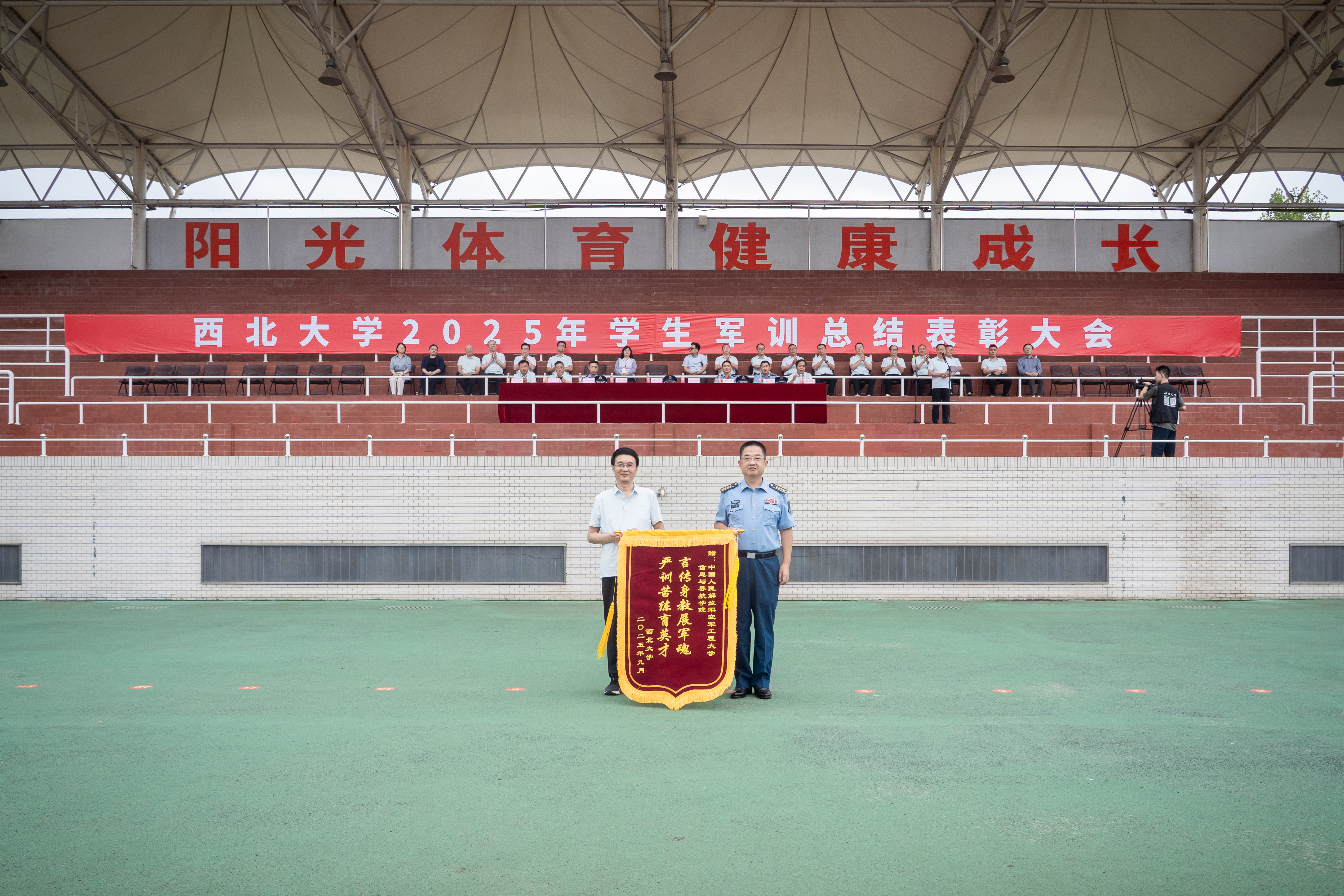 9月12日下午,开云手机网页版登录入口在长安校区举行2025年学生军训总结表彰大会。校党委常委、副校长、军训旅政委张远军,承训单位某部领导和带训干部,开云手机网页版登录入口全体参训干部和2025年参训学生参加了大会,汇报大会由校党委常委、副校长、军训旅副政委李振海主持。