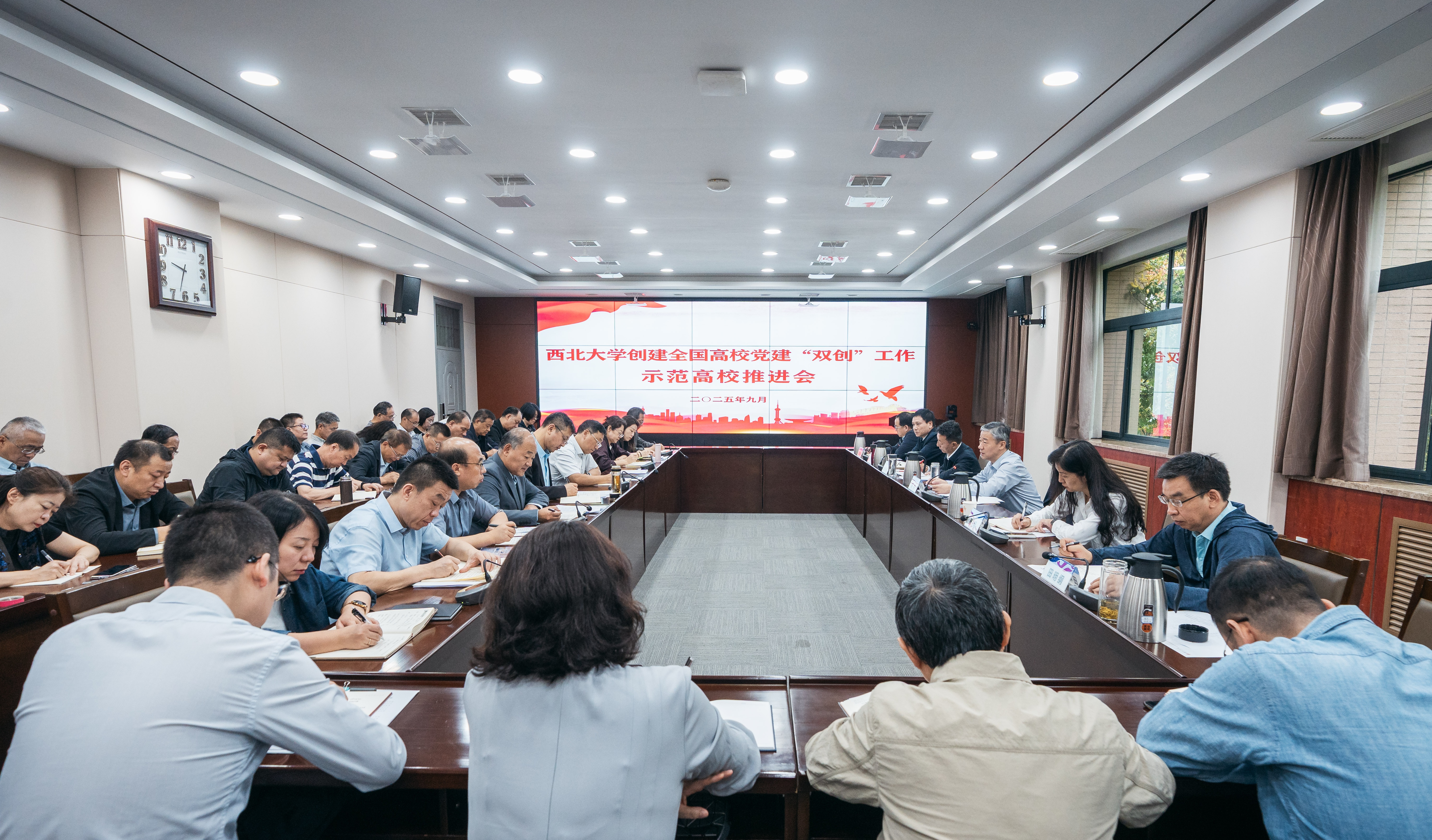 9月18日,学校创建全国高校“党建”双创工作示范高校推进会在长安校区召开。校党委书记蒋林,校党委副书记张清,校党委副书记、纪委书记、省纪委监委驻校纪检监察组组长肖道远,校党委常委、副校长田明纲,校党委常委、统战部部长董国强出席会议。会议由校党委副书记赵作纽主持。