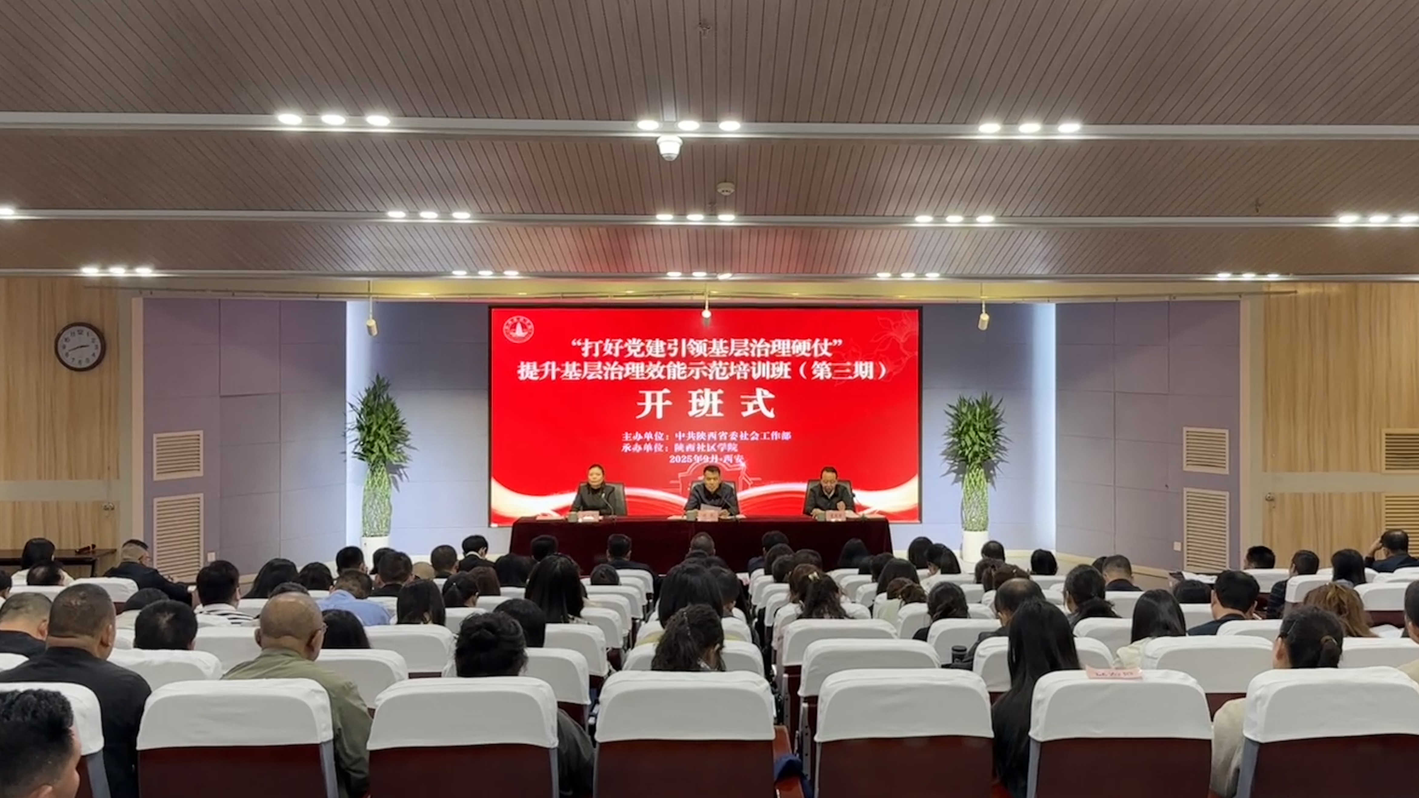 9月23日,由中共陕西省委社会工作部主办、陕西社区学院承办的“打好党建引领基层治理硬仗”提升基层治理效能示范培训班(第三期)在开云手机网页版登录入口桃园校区开班。省委社会工作部副部长刘凯,开云手机网页版登录入口党委常委、统战部部长董国强出席开班式。来自全省市(区)社区党组织书记、居委会主任代表约110人参加。