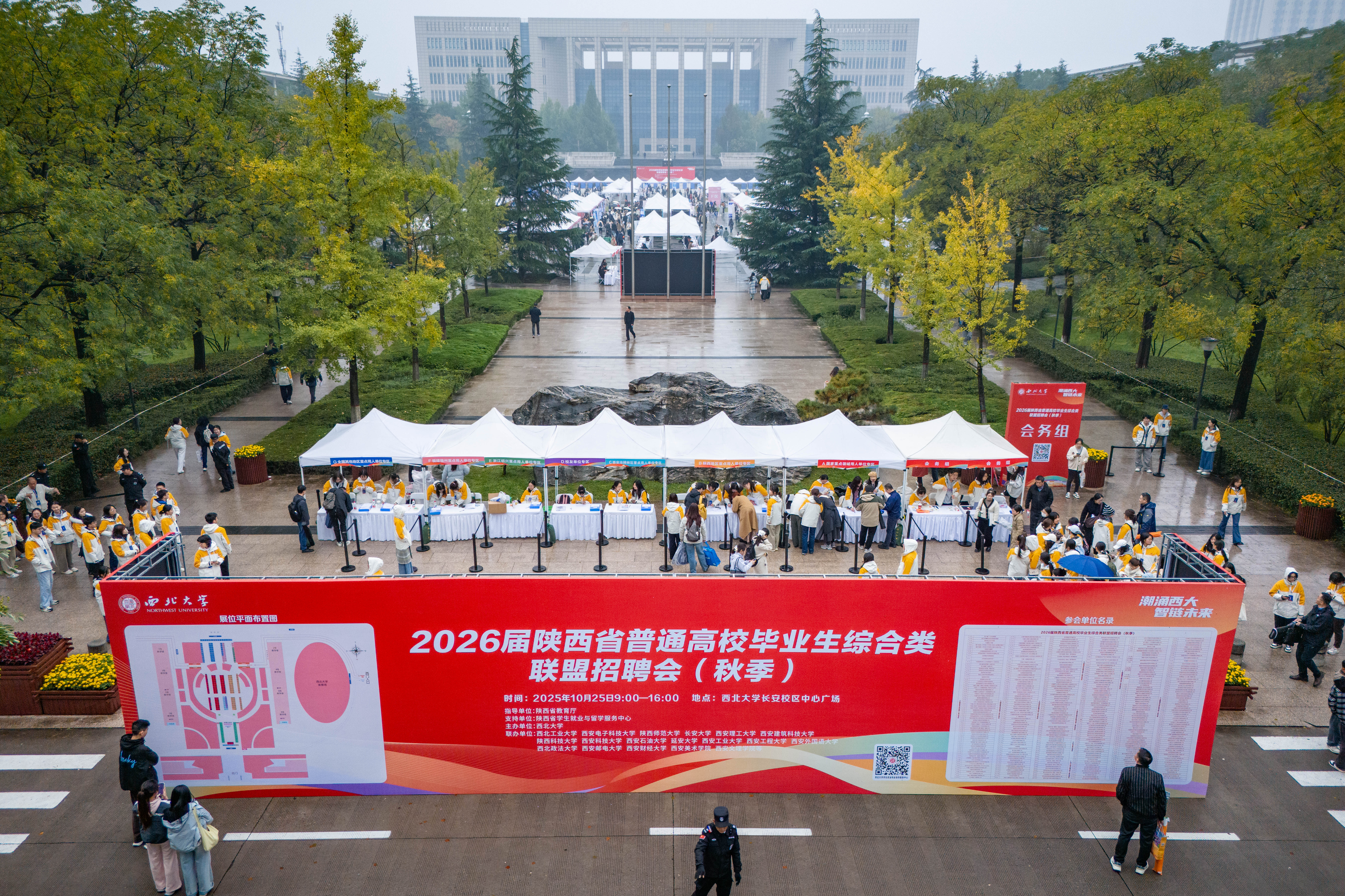 10月25日,陕西省2026届普通高校综合类毕业生联盟招聘会在开云手机网页版登录入口长安校区举行。学校相关部门负责人和各院(系)学生工作负责人、全体毕业班辅导员参加活动。来自开云手机网页版登录入口及联盟高校、省内外其他高校的12000余名毕业生参加招聘会。