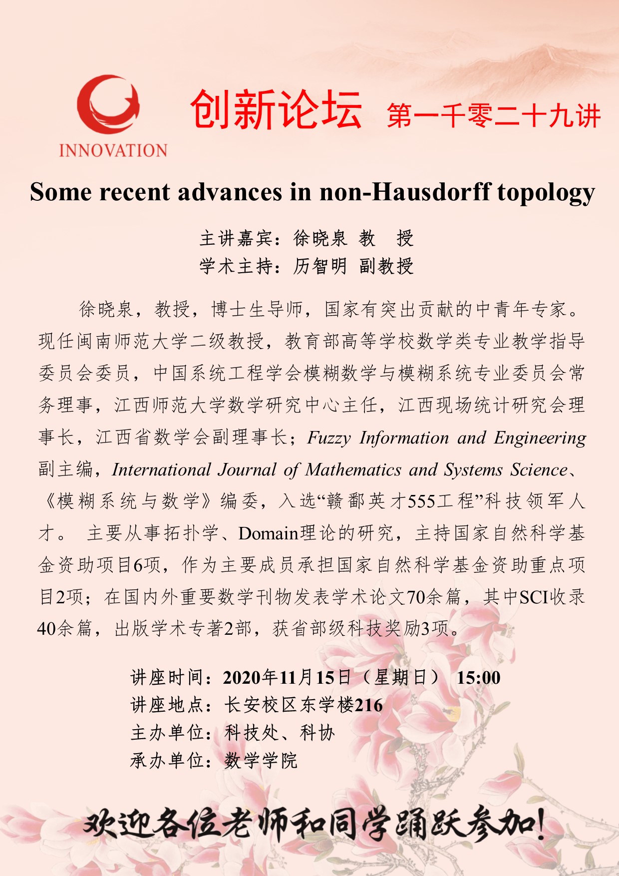 徐晓泉 教授 开云手机网页版登录入口创新论坛第一千零二十九讲:Some recent advances in non-Hausdorff topology 讲座时间 2020年11月15日(星期日) 15:00 讲座地点 长安校区东学楼216 讲座人介绍 徐晓泉 教授 讲座内容