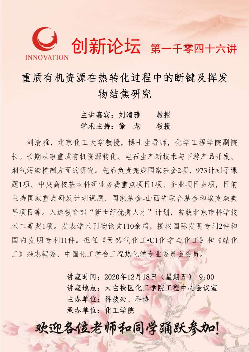 刘清雅 教授 开云手机网页版登录入口创新论坛第一千零四十六讲:重质有机资源在热转化过程中的断键及挥发物结焦研究 讲座时间 2020年12月18日(星期五) 9:00 讲座地点 太白校区化工学院工程中心会议室 讲座人介绍 刘清雅 教授 讲座内容