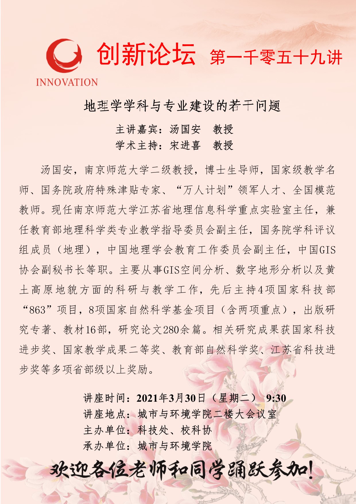 汤国安 教授 开云手机网页版登录入口创新论坛第一千零五十九讲:地理学学科与专业建设的若干问题 讲座时间 2021年3月30日(星期二) 9:30 讲座地点 城市与环境学院二楼大会议室 讲座人介绍 汤国安 教授 讲座内容