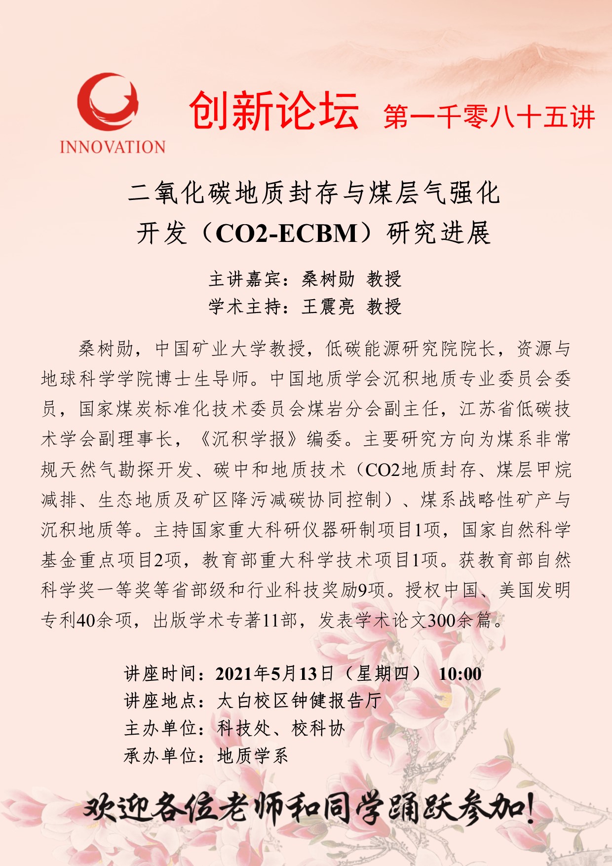 桑树勋 教授 开云手机网页版登录入口创新论坛第一千零八十五讲:二氧化碳地质封存与煤层气强化开发(CO2-ECBM)研究进展 讲座时间 2021年5月13日(星期四) 10:00 讲座地点 太白校区钟健报告厅 讲座人介绍 桑树勋 教授 讲座内容