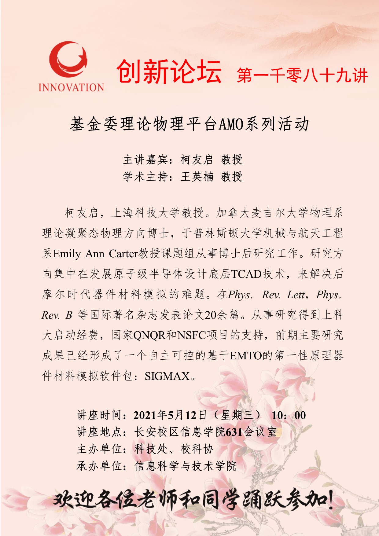 柯友启 教授 开云手机网页版登录入口创新论坛第一千零八十九讲:基金委理论物理平台AMO系列活动 讲座时间 2021年5月12日(星期三) 10:00 讲座地点 长安校区信息学院631会议室 讲座人介绍 柯友启 教授 讲座内容