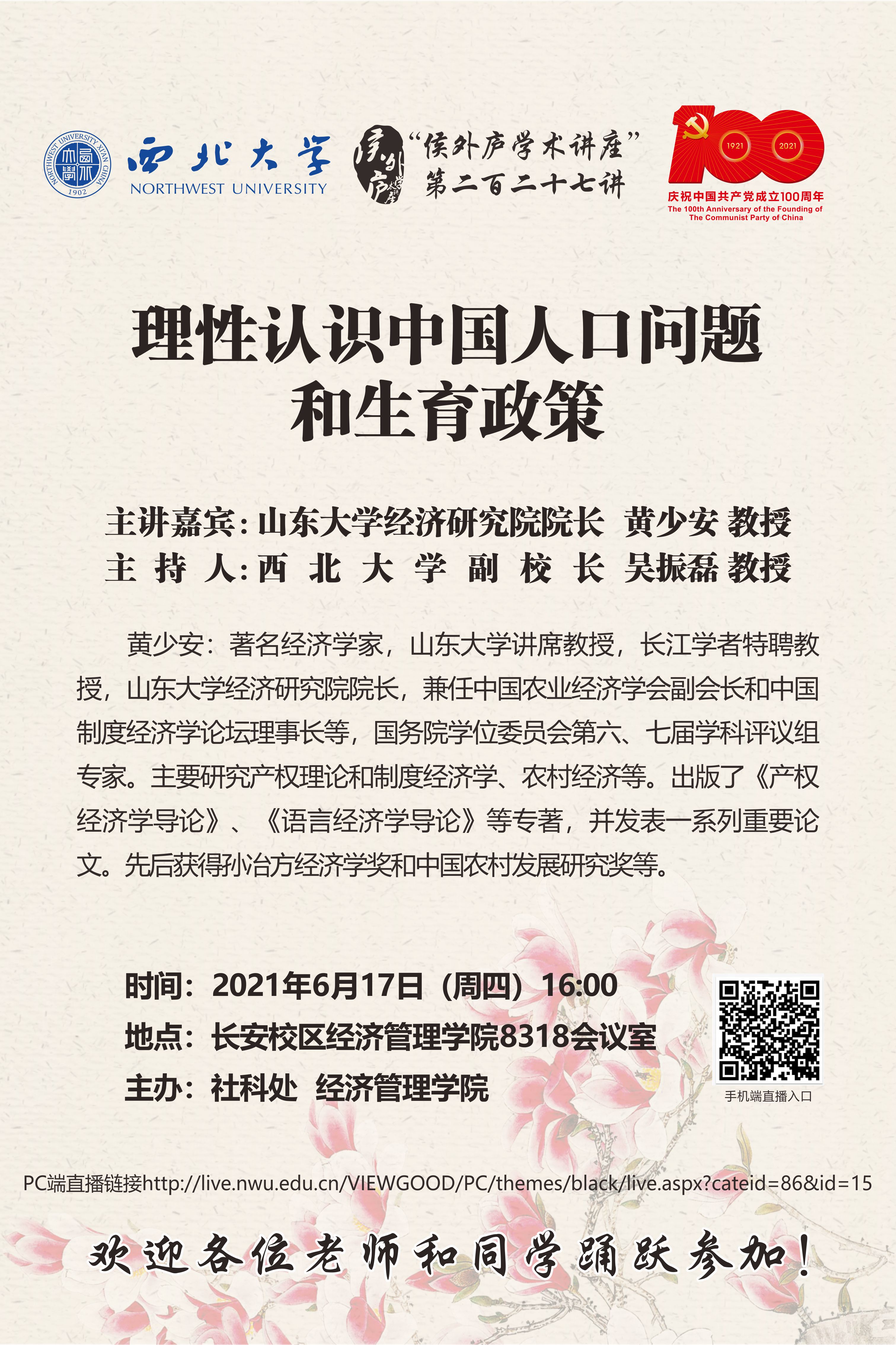 侯外庐学术讲座第二百二十七讲:理性认识中国人口问题和生育政策