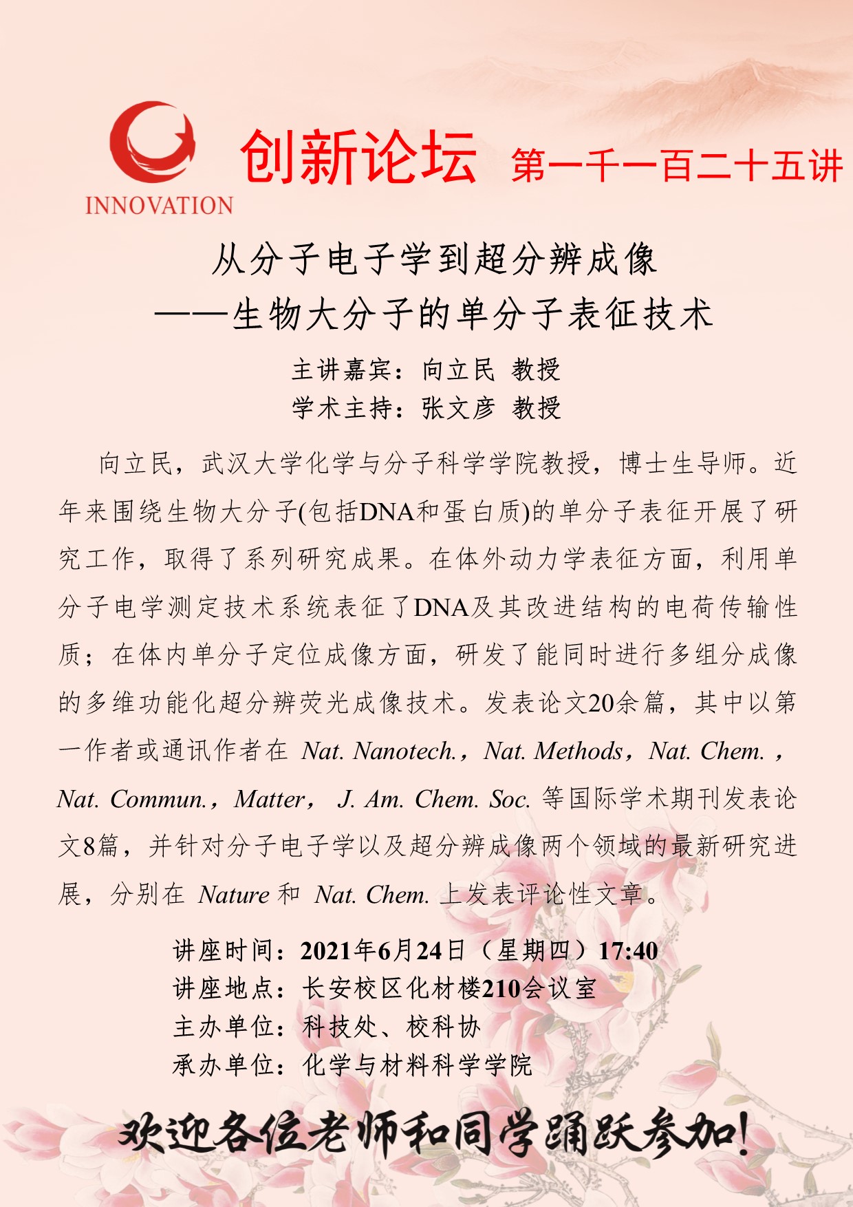 向立民 教授 开云手机网页版登录入口创新论坛第一千一百二十五讲:从分子电子学到超分辨成像——生物大分子的单分子表征技术 讲座时间 2021年6月24日(星期四)17:40 讲座地点 长安校区化材楼210会议室 讲座人介绍 向立民 教授 讲座内容