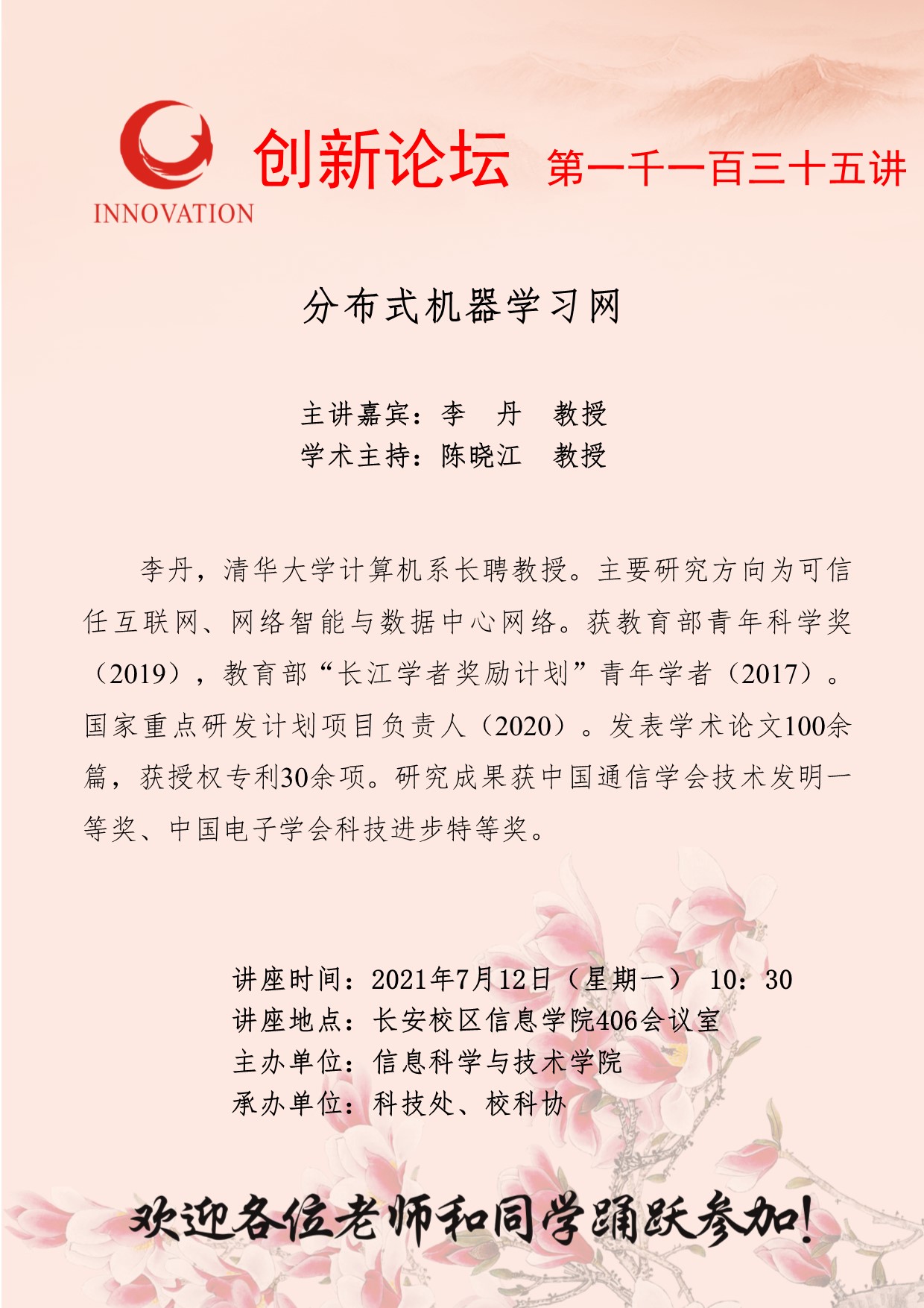 李丹 教授 开云手机网页版登录入口创新论坛第一千一百三十五讲:分布式机器学习网 讲座时间 2021年7月12日(星期一)10:30 讲座地点 长安校区信息学院406会议室 讲座人介绍 李丹 教授 讲座内容