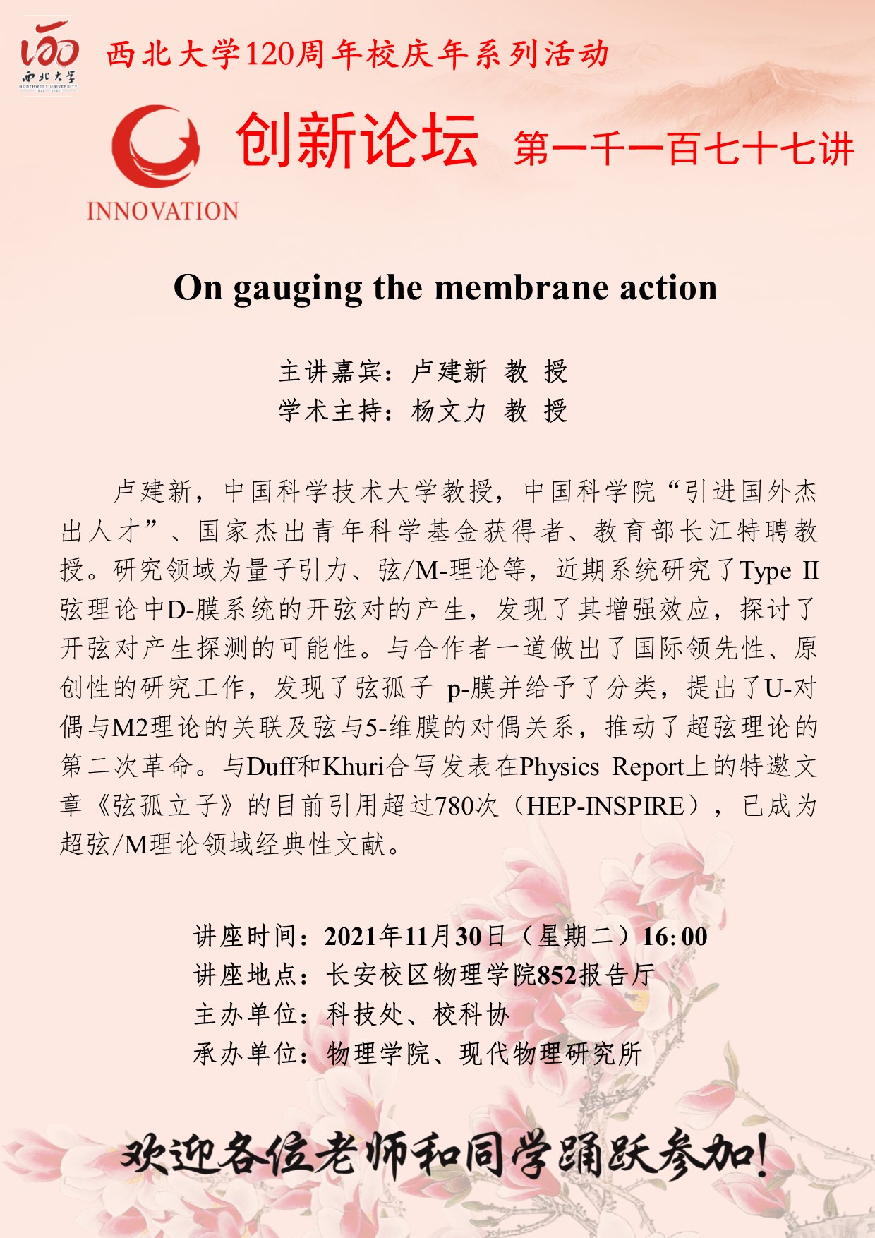 卢建新 教授 开云手机网页版登录入口创新论坛第一千一百七十七讲暨120周年校庆年系列活动:On gauging the membrane action 讲座时间 2021年11月30日(星期二)16:00 讲座地点 长安校区物理学院852报告厅 讲座人介绍 卢建新 教授 讲座内容