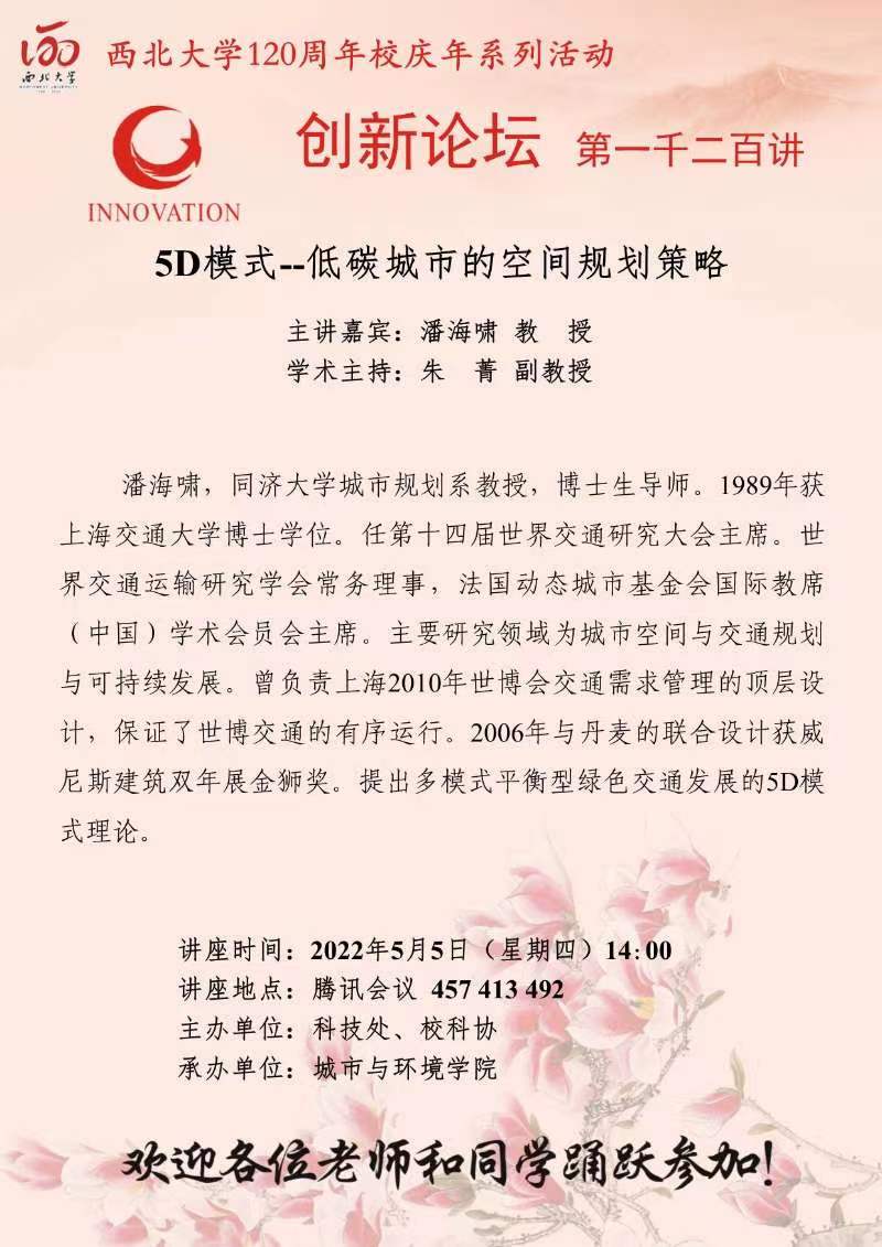 潘海啸 教授 开云手机网页版登录入口创新论坛第一千二百讲暨120周年校庆年系列活动:5D模式--低碳城市的空间规划策略 讲座时间 2022年5月5日(星期四)14:00 讲座地点 腾讯会议:457 413 492 讲座人介绍 潘海啸 教授 讲座内容