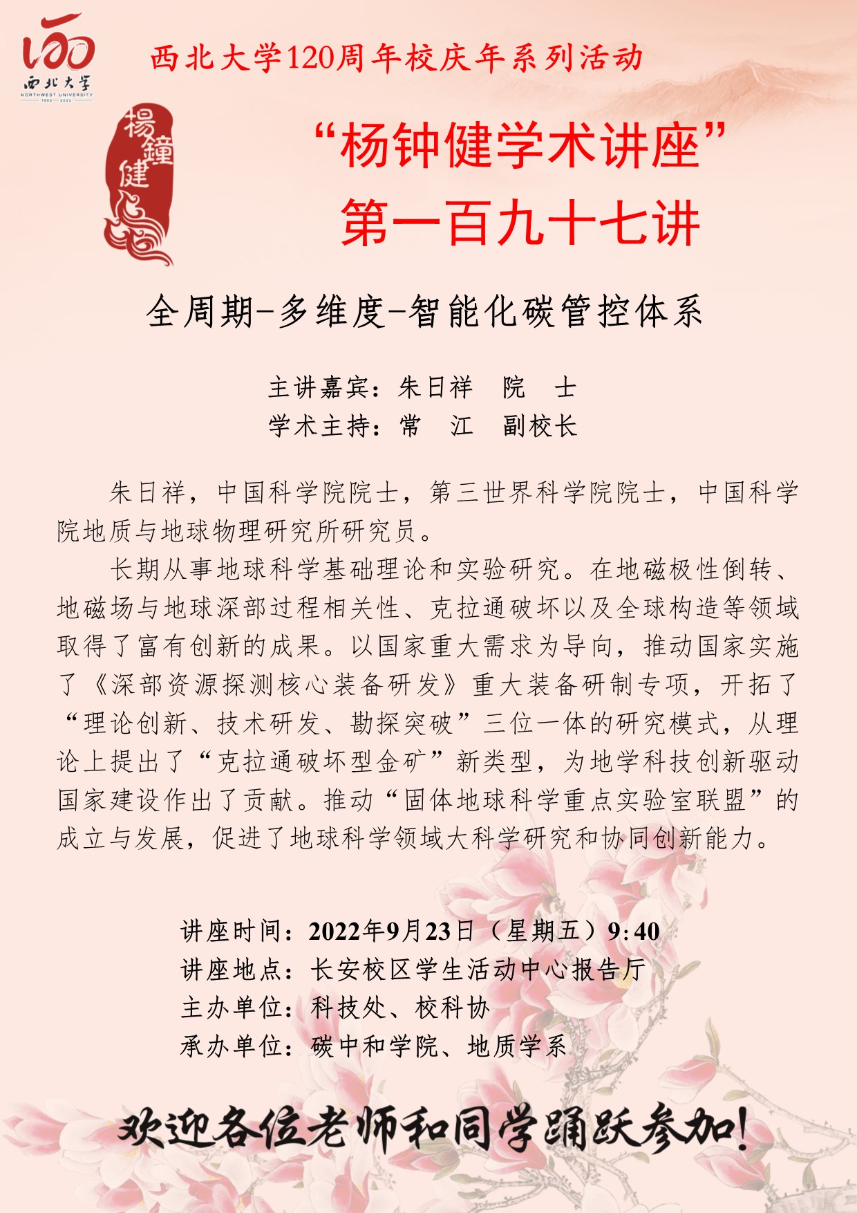 “杨钟健学术讲座”第一百九十七讲暨120周年校庆年系列活动:全周期-多维度-智能化碳管控体系