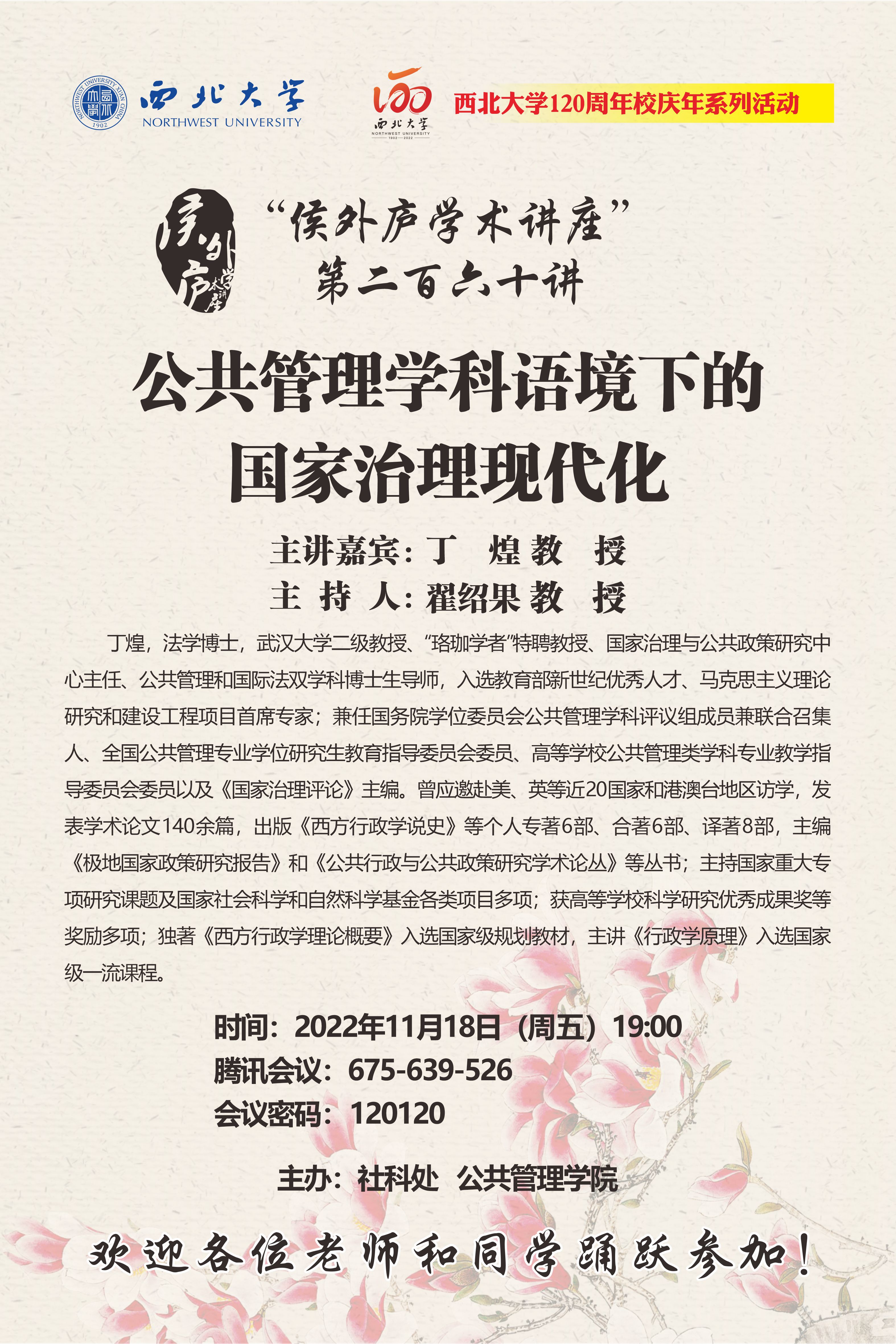 侯外庐学术讲座第二百六十讲暨120周年校庆年系列活动:公共管理学科语境下的国家治理现代化