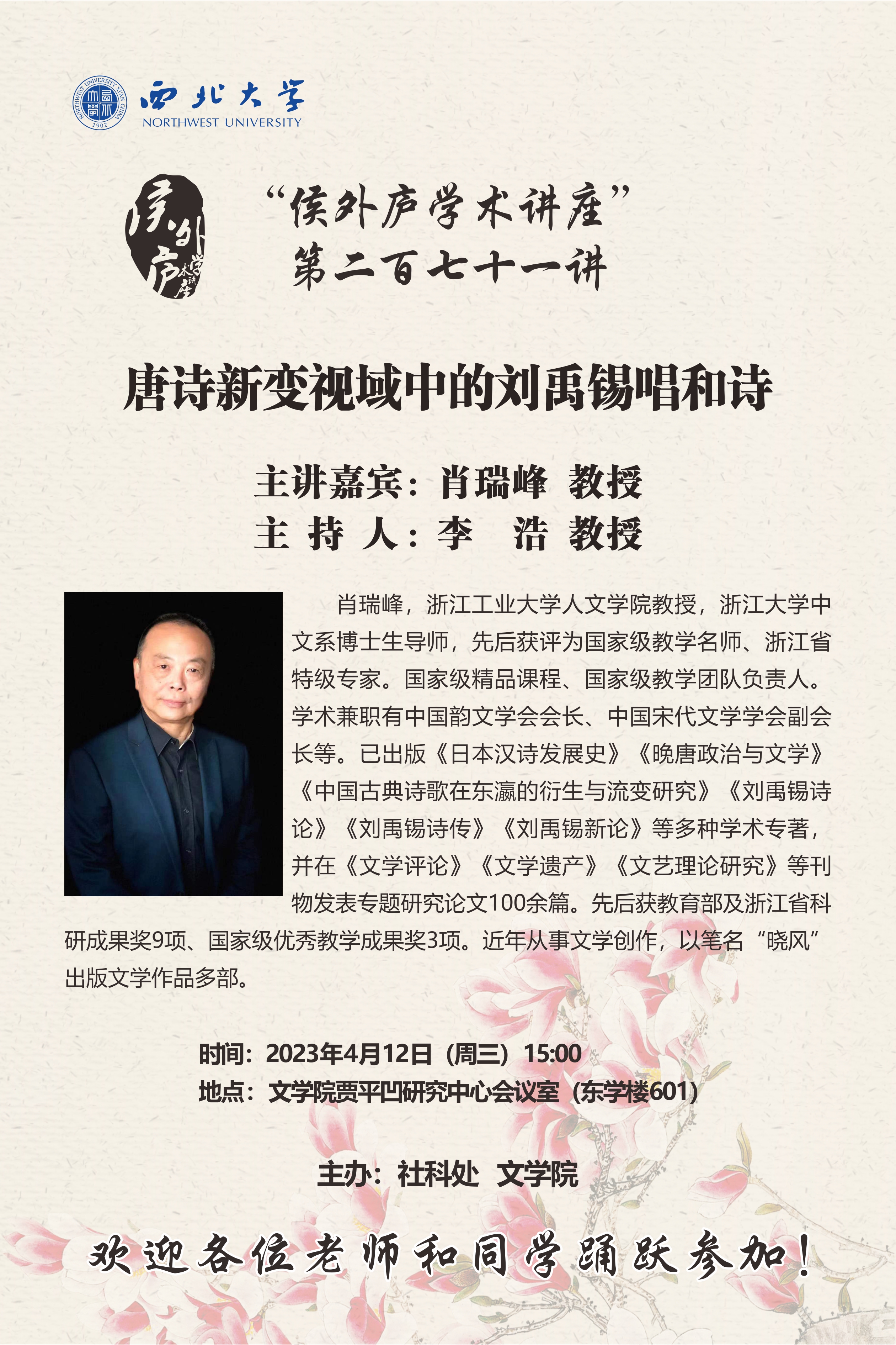 侯外庐学术讲座第二百七十一讲:唐诗新变视域中的刘禹锡唱和诗