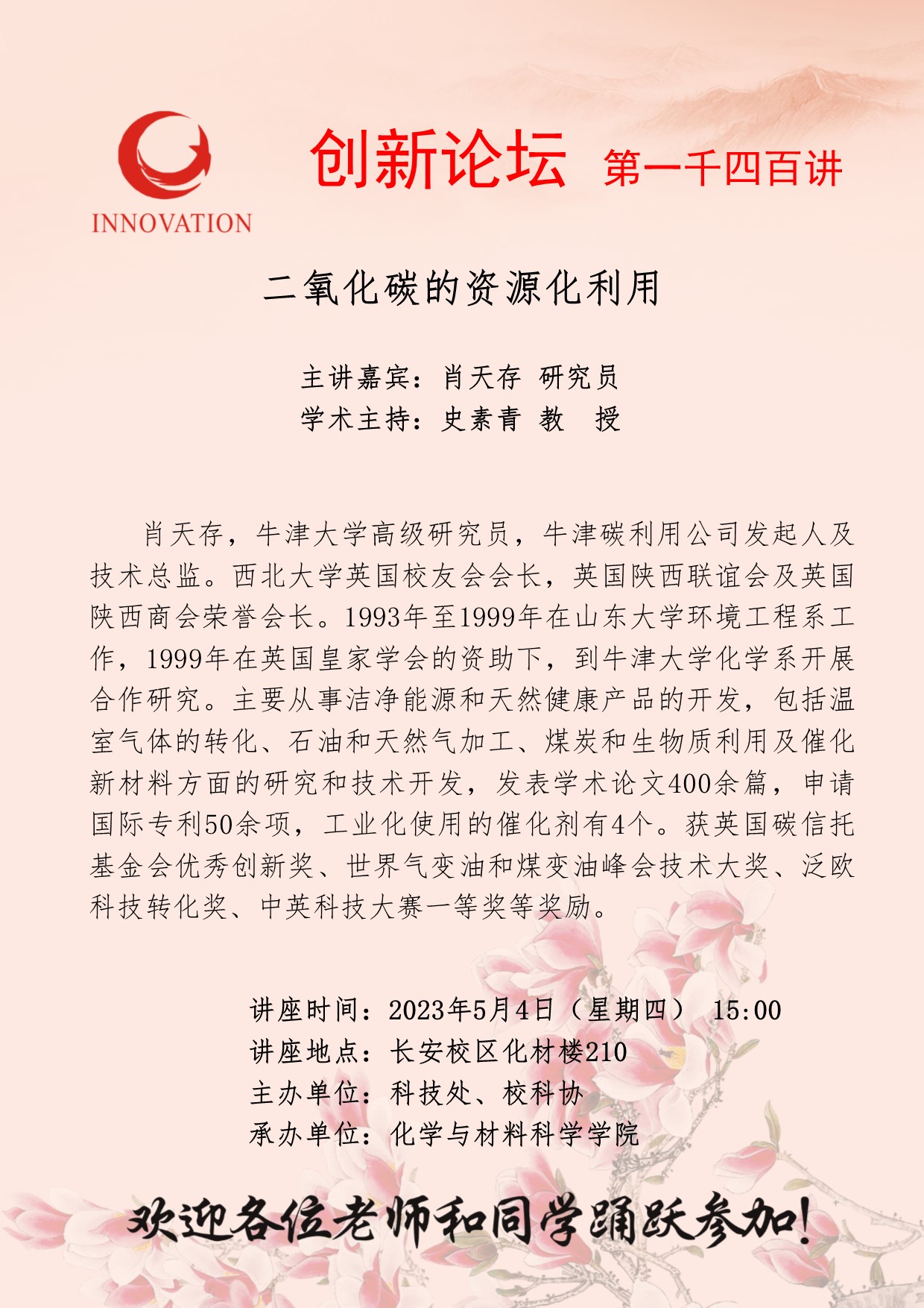 肖天存 研究员 开云手机网页版登录入口创新论坛第一千四百讲:二氧化碳的资源化利用 讲座时间 2023年5月4日(星期四) 15:00 讲座地点 长安校区化材楼210 讲座人介绍 肖天存 研究员 讲座内容