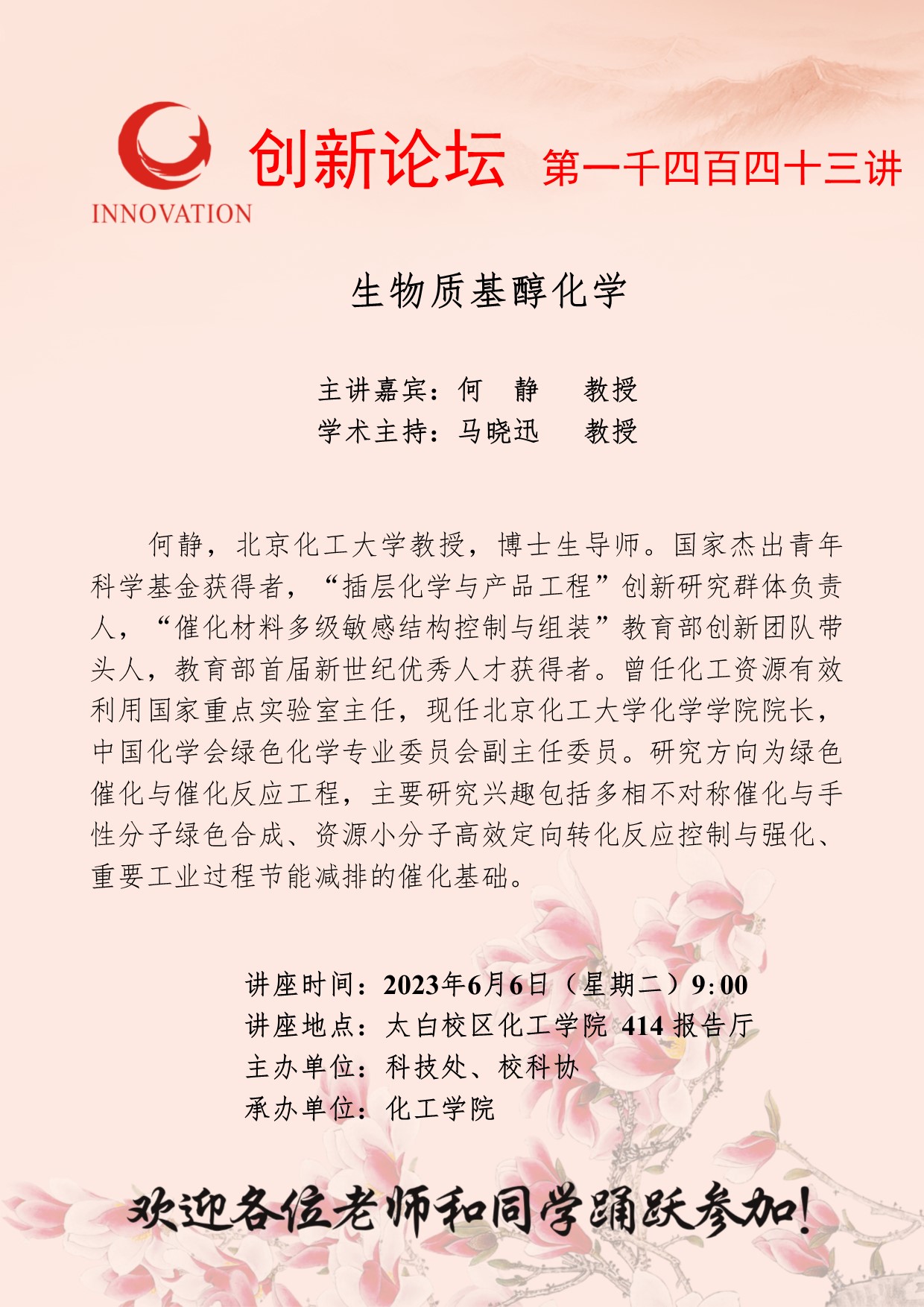 何静 教授 开云手机网页版登录入口创新论坛第一千四百四十三讲:生物质基醇化学 讲座时间 2023年6月6日(星期二)9:00 讲座地点 太白校区化工学院 414 报告厅 讲座人介绍 何静 教授 讲座内容