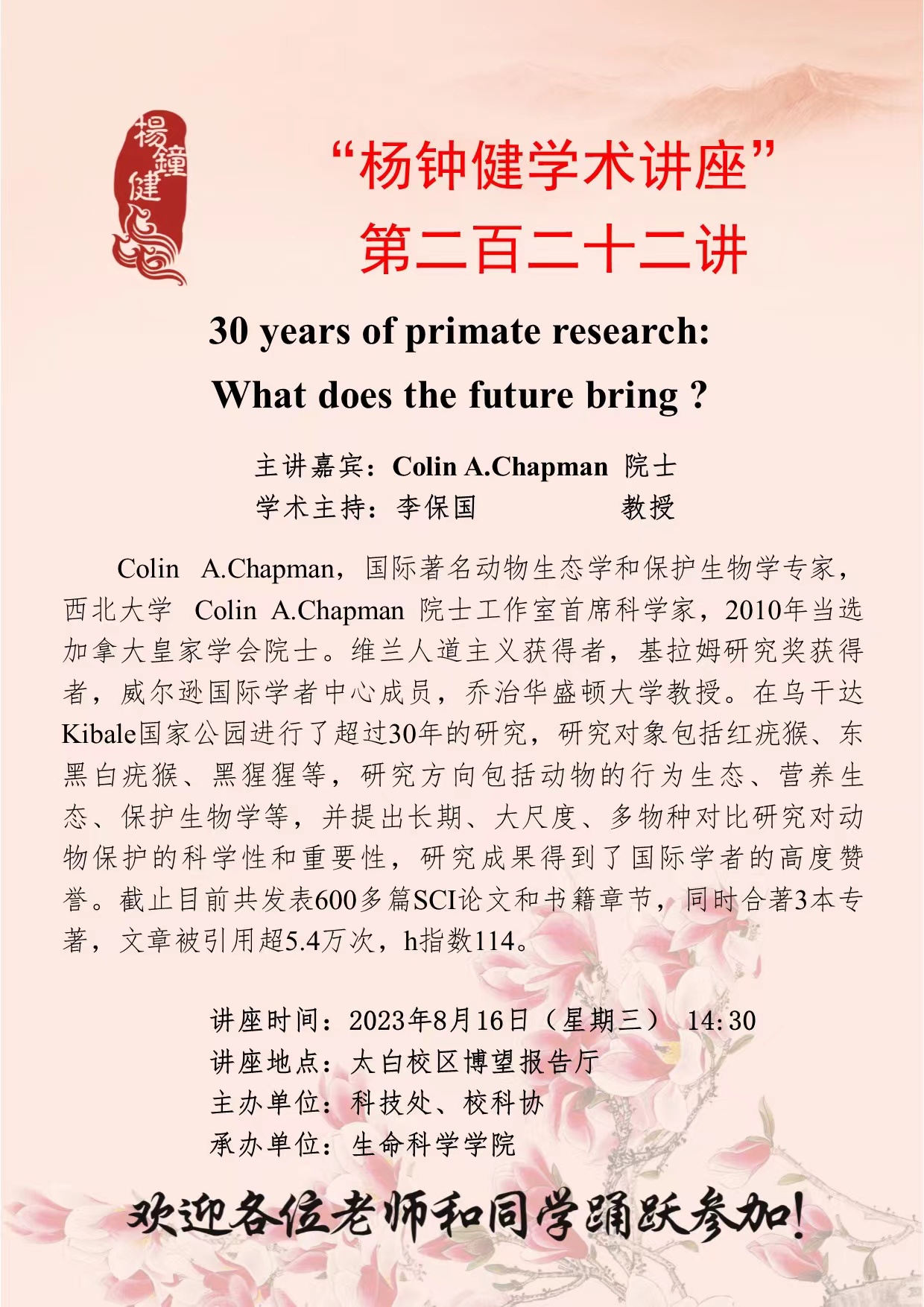 “杨钟健学术讲座”第二百二十二讲:30 years of primate research: What does the future bring ?