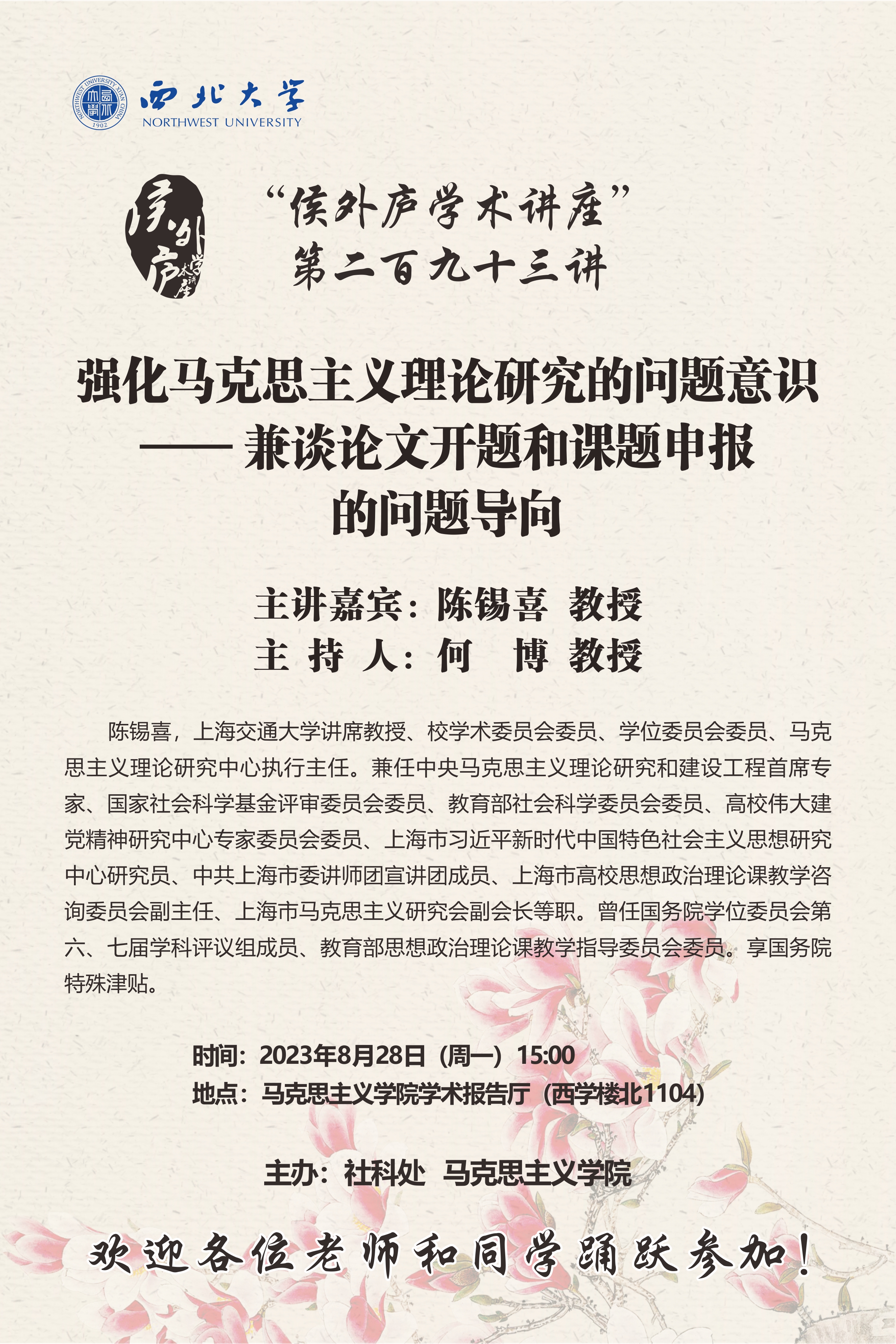 马克思主义学院学术报告厅(西学楼北1104)