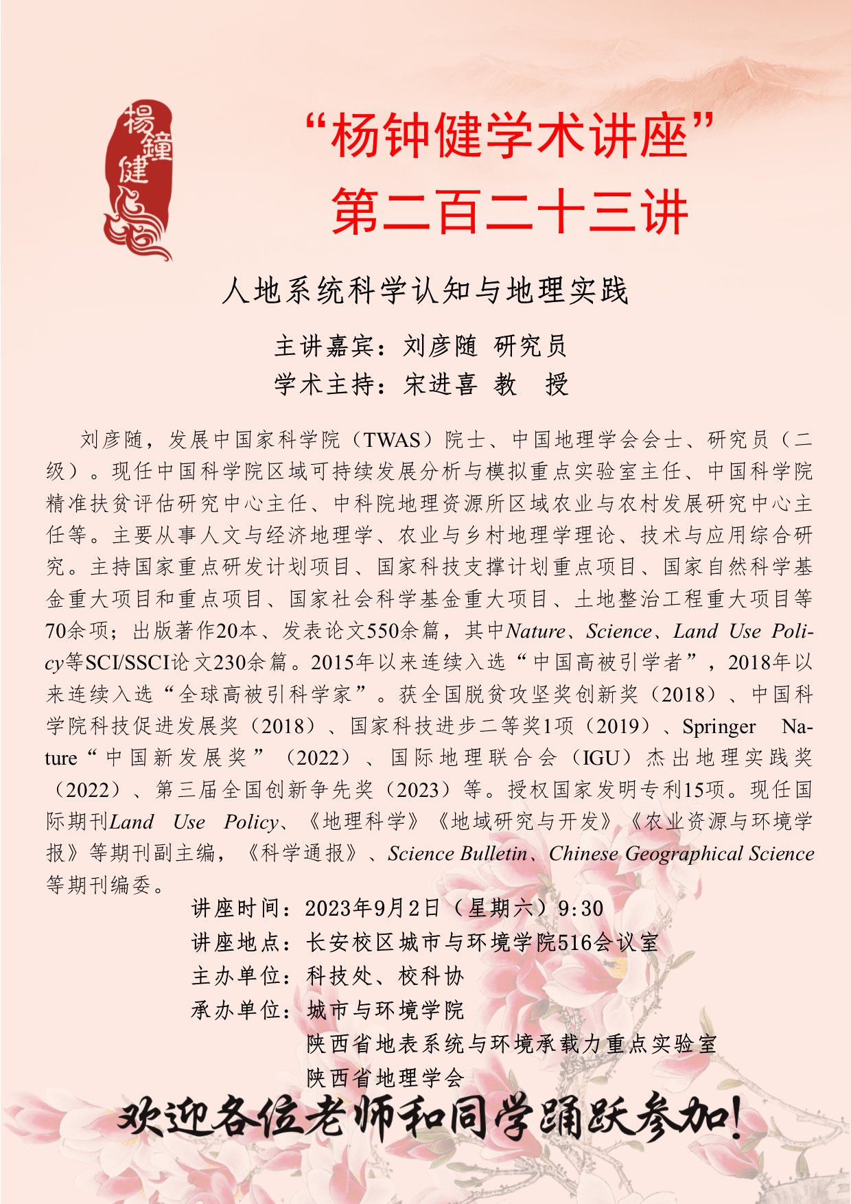 “杨钟健学术讲座”第二百二十三讲:人地系统科学认知与地理实践