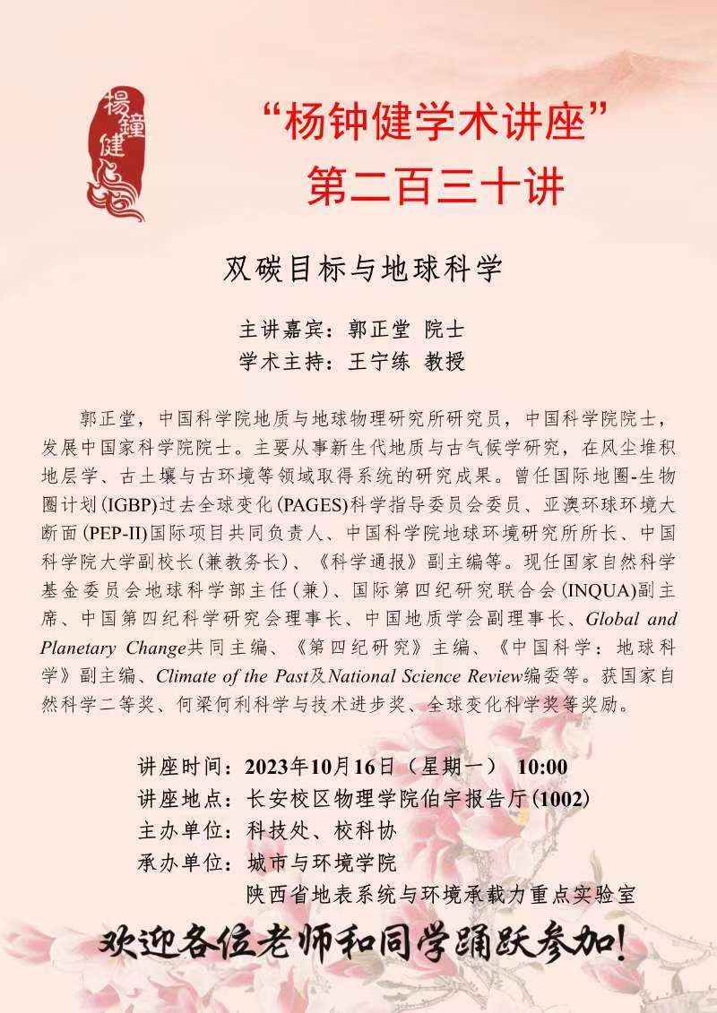 “杨钟健学术讲座”第二百三十讲:双碳目标与地球科学