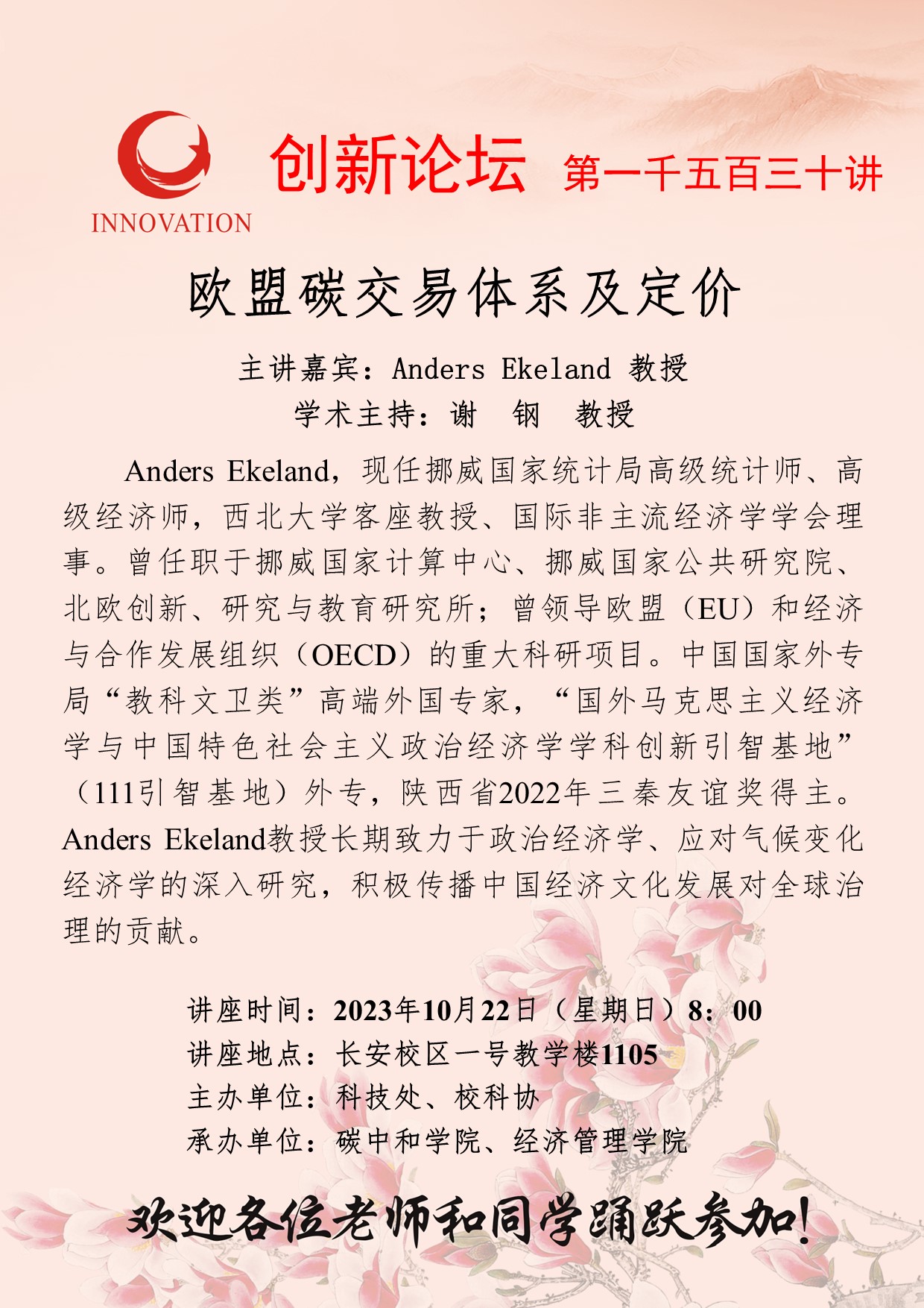 Anders Ekeland 教授 开云手机网页版登录入口创新论坛第一千五百三十讲:欧盟碳交易体系及定价 讲座时间 2023年10月22日(星期日) 8:00 讲座地点 长安校区一号教学楼1105 讲座人介绍 Anders Ekeland 教授 讲座内容