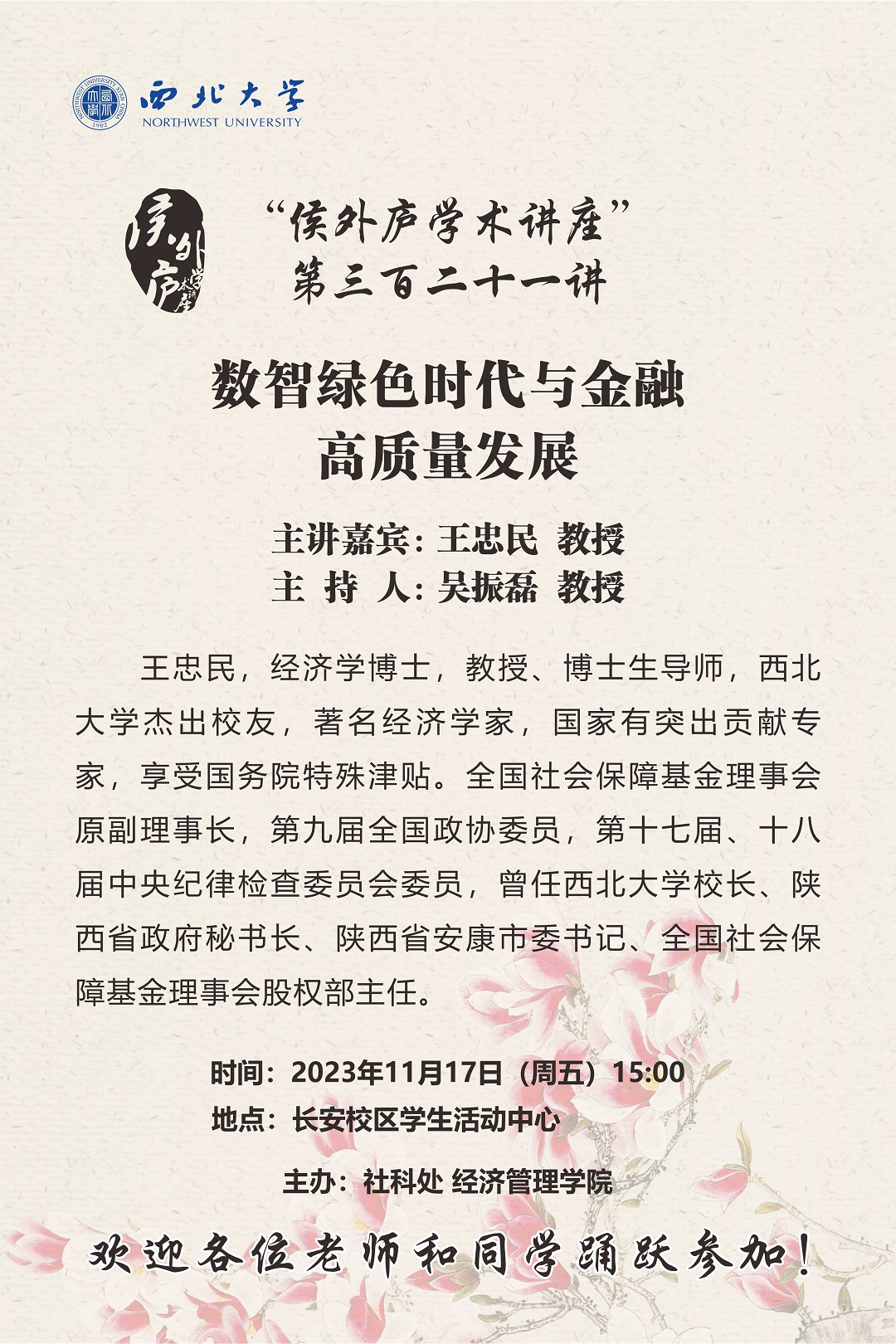 侯外庐学术讲座第三百二十一讲:数智绿色时代与金融高质量发展