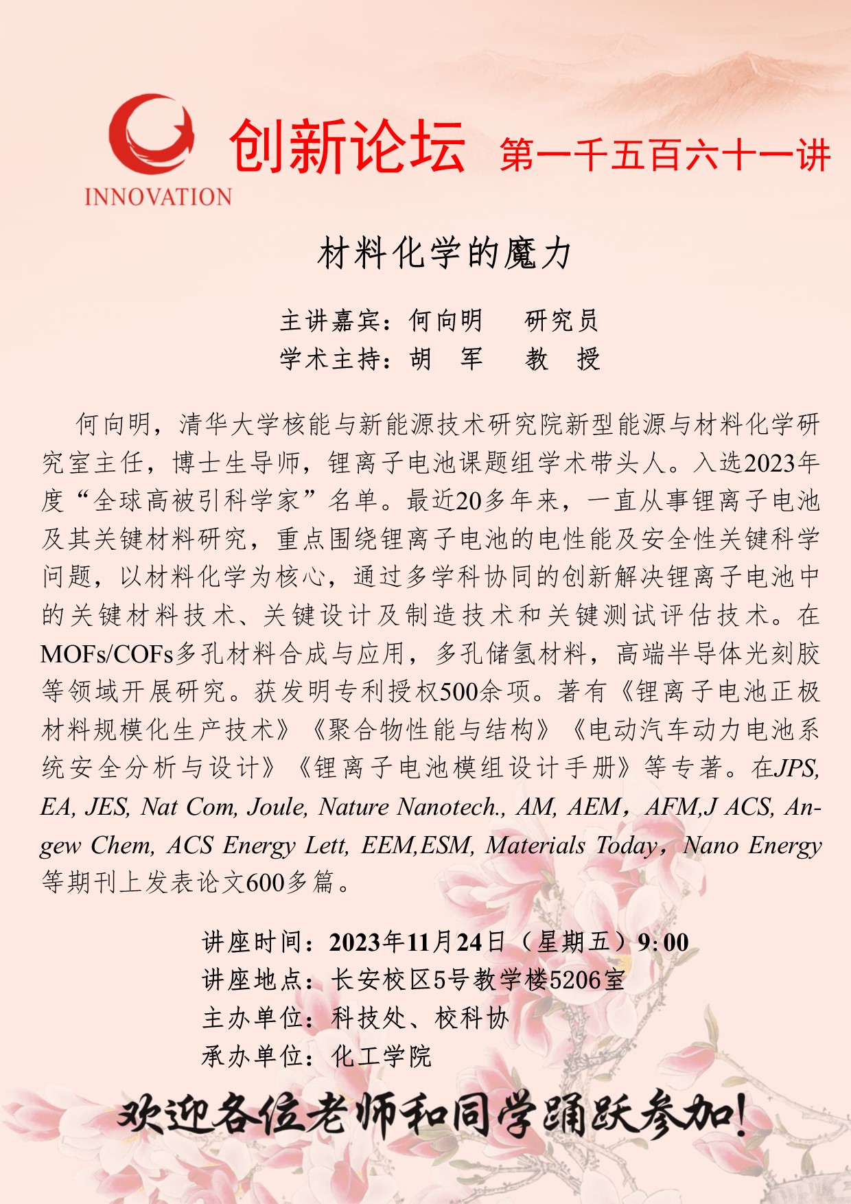 何向明 研究员 开云手机网页版登录入口创新论坛第一千五百六十一讲:材料化学的魔力 讲座时间 2023年11月24日(星期五)9:00 讲座地点 长安校区5号教学楼5206室 讲座人介绍 何向明 研究员 讲座内容