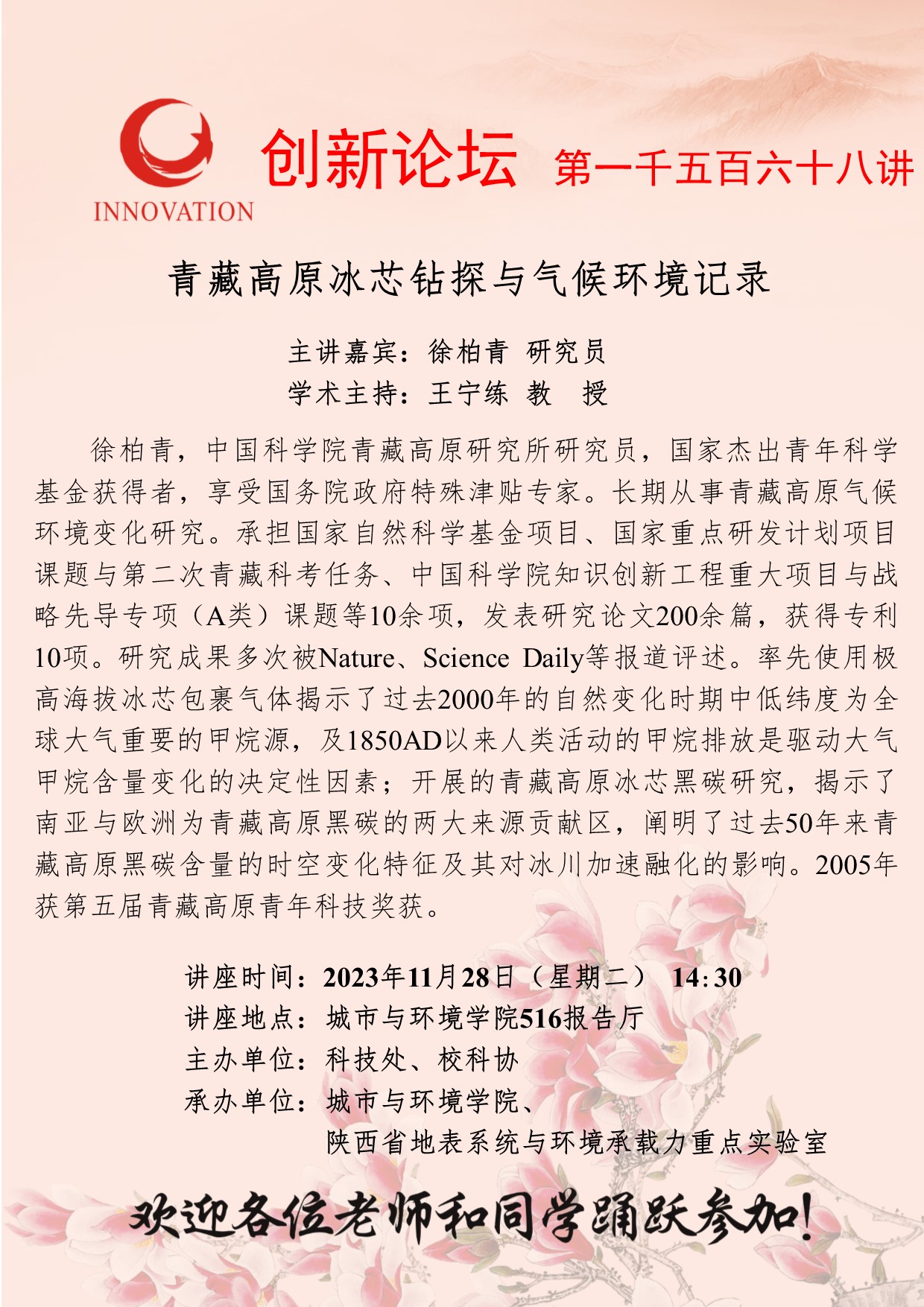 徐柏青 研究员 开云手机网页版登录入口创新论坛第一千五百六十八讲:青藏高原冰芯钻探与气候环境记录 讲座时间 2023年11月28日(星期二) 14:30 讲座地点 城市与环境学院516报告厅 讲座人介绍 徐柏青 研究员 讲座内容