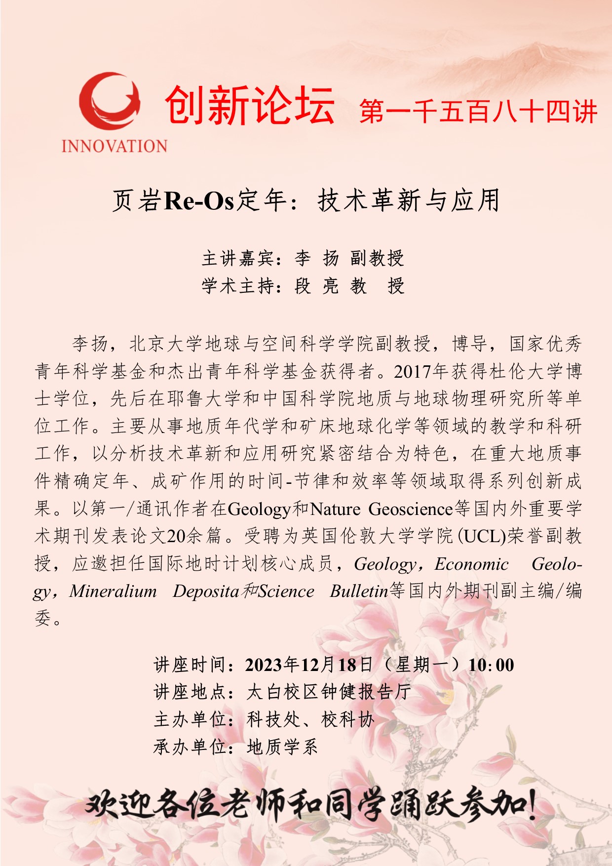 李扬 副教授 开云手机网页版登录入口创新论坛第一千五百八十四讲:页岩Re-Os定年: 技术革新与应用 讲座时间 2023年12月18日(星期一)10:00 讲座地点 太白校区钟健报告厅 讲座人介绍 李扬 副教授 讲座内容