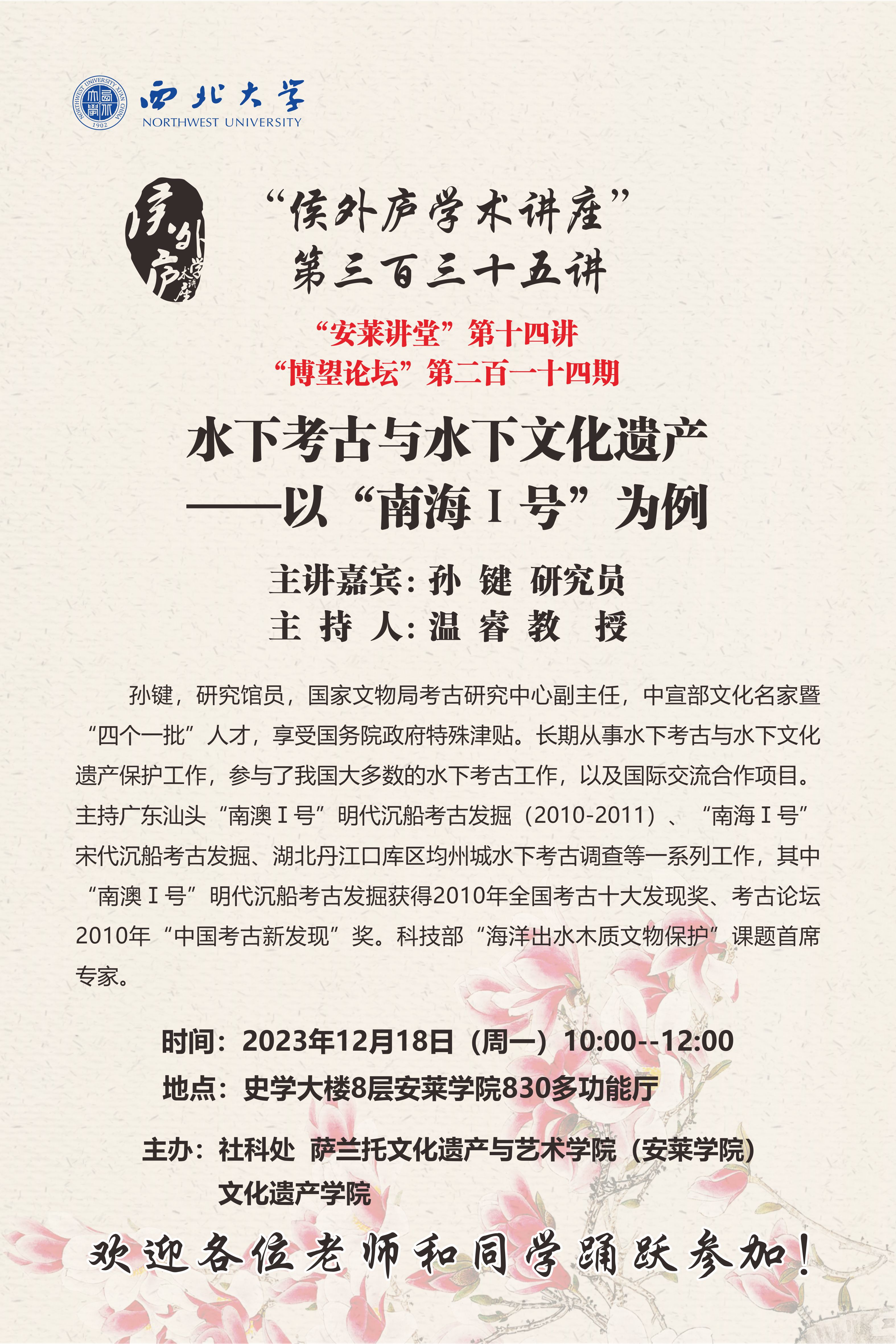 侯外庐学术讲座第三百三十五讲:水下考古与水下文化遗产---以“南海Ⅰ号”为例