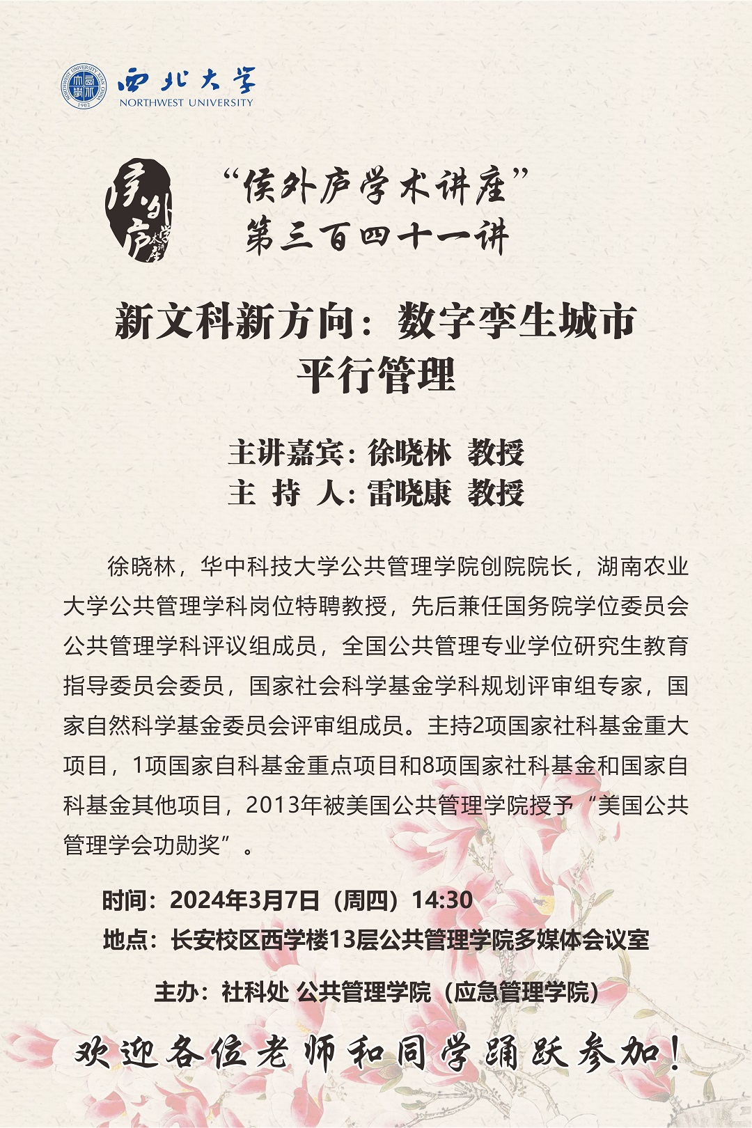 侯外庐学术讲座第三百四十一讲:新文科新方向:数字孪生城市平行管理