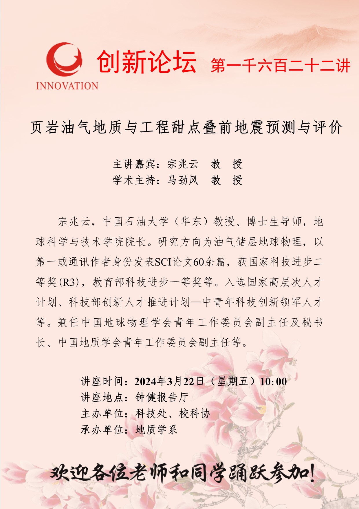 宗兆云 教授 开云手机网页版登录入口创新论坛第一千六百二十二讲:页岩油气地质与工程甜点叠前地震预测与评价 讲座时间 2024年3月22日(星期五)10:00 讲座地点 钟健报告厅 讲座人介绍 宗兆云 教授 讲座内容