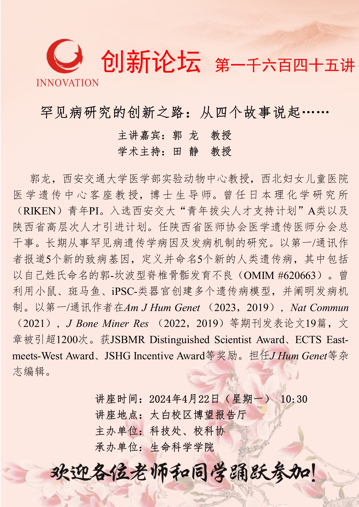 郭龙 教授 开云手机网页版登录入口创新论坛第一千六百四十五讲:罕见病研究的创新之路:从四个故事说起…… 讲座时间 2024年4月22日(星期一) 10:30 讲座地点 太白校区博望报告厅 讲座人介绍 郭龙 教授 讲座内容