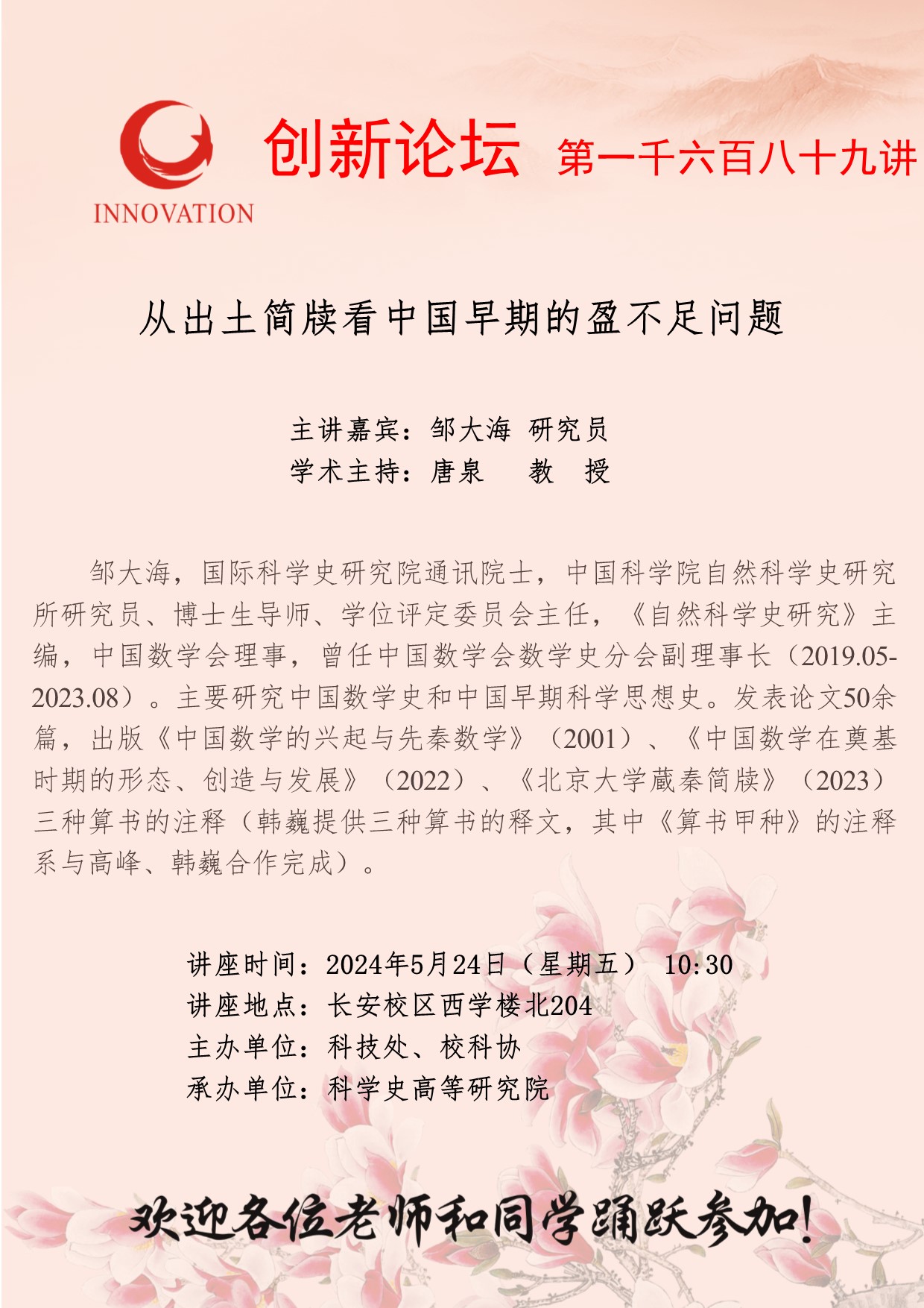 邹大海 研究员 开云手机网页版登录入口创新论坛第一千六百八十九讲:从出土简牍看中国早期的盈不足问题 讲座时间 2024年5月24日(星期五) 10:30 讲座地点 长安校区西学楼北204 讲座人介绍 邹大海 研究员 讲座内容