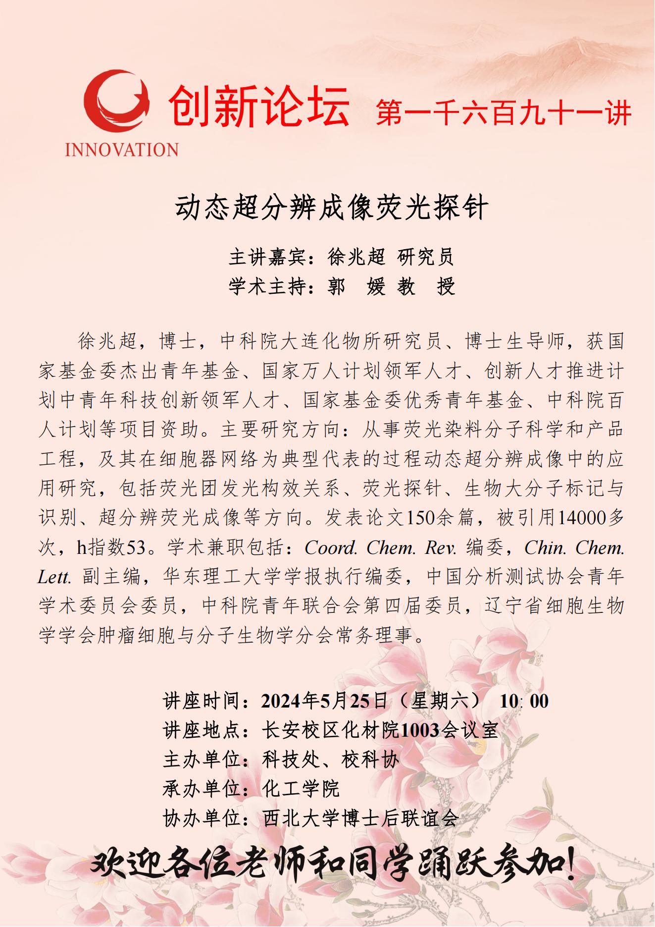 徐兆超 研究员 开云手机网页版登录入口创新论坛第一千六百九十一讲:动态超分辨成像荧光探针 讲座时间 2024年5月25日(星期六) 10: 00 讲座地点 长安校区化材院1003会议室 讲座人介绍 徐兆超 研究员 讲座内容