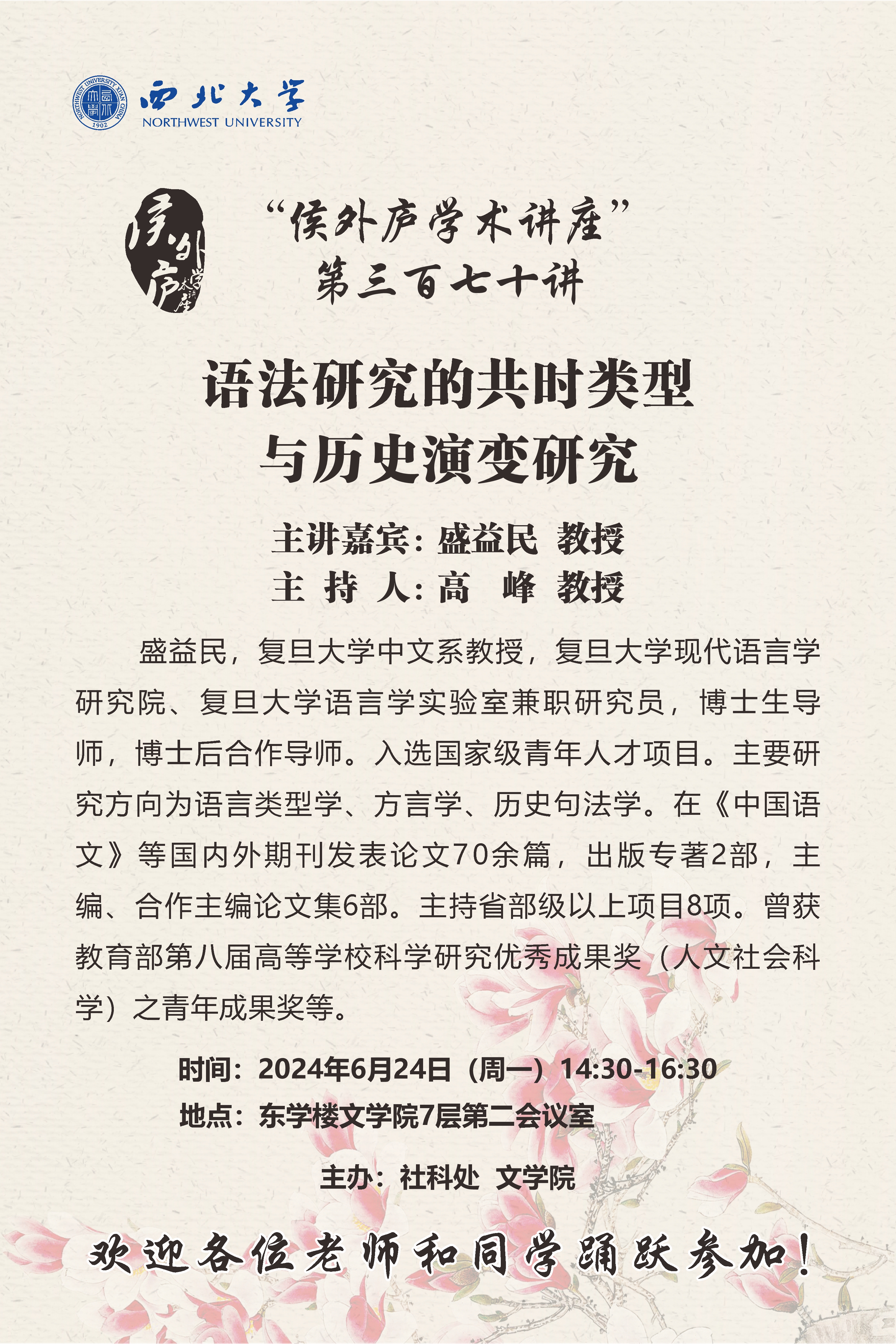 侯外庐学术讲座第三百六十九讲:汉语汉字中的库藏聚变:从语音文字到词汇语法