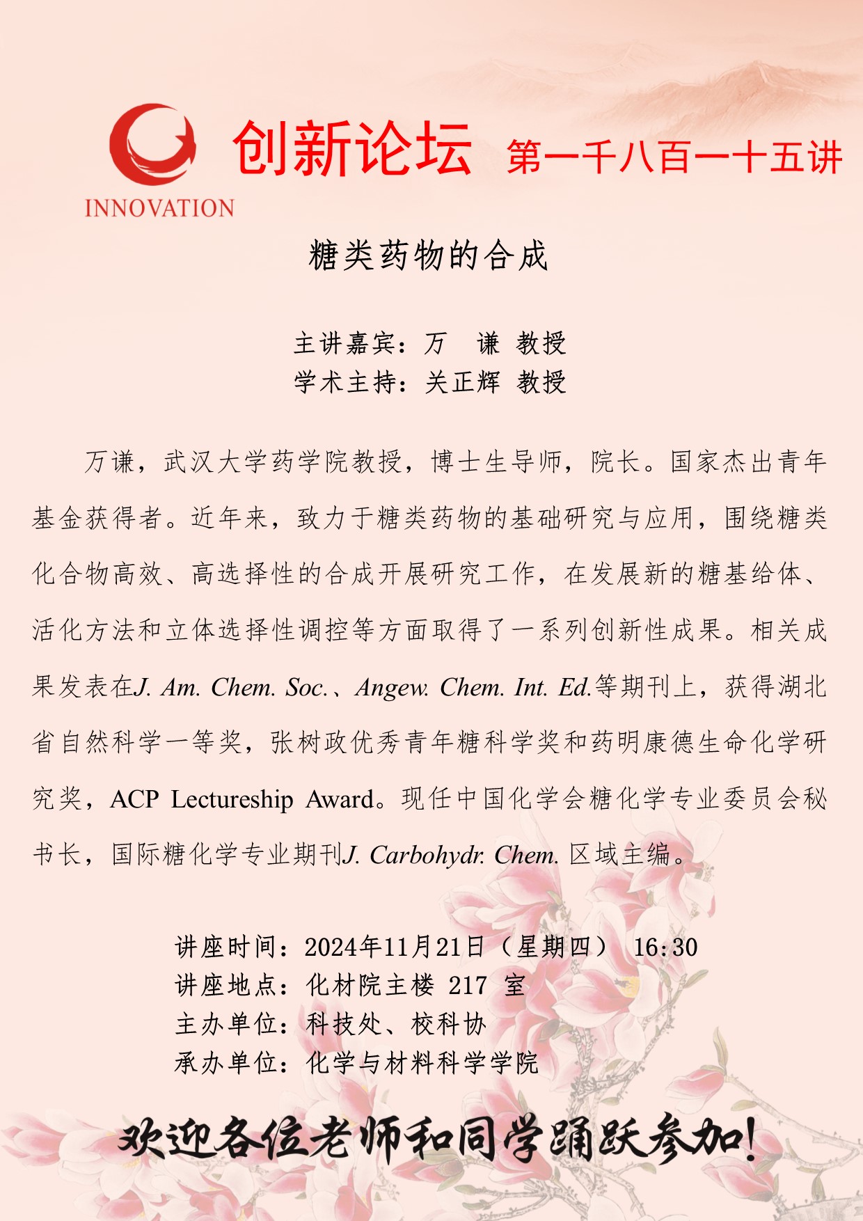 开云手机网页版登录入口创新论坛第一千八百一十五讲:糖类药物的合成