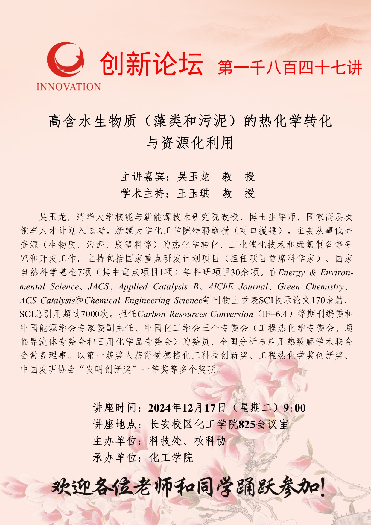 吴玉龙 教授 开云手机网页版登录入口创新论坛第一千八百四十七讲:高含水生物质(藻类和污泥)的热化学转化与资源化利用 讲座时间 2024年12月17日(星期二)9:00 讲座地点 长安校区化工学院825会议室 讲座人介绍 吴玉龙 教授 讲座内容
