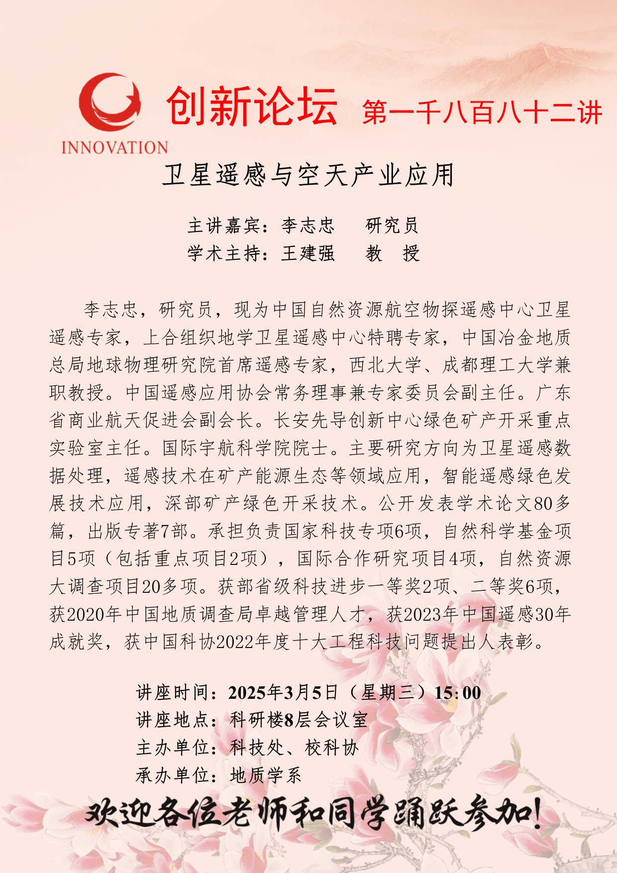 李志忠 研究员 开云手机网页版登录入口创新论坛第一千八百八十二讲:卫星遥感与空天产业应用 讲座时间 2025年3月5日(星期三)15:00 讲座地点 科研楼8层会议室 讲座人介绍 李志忠 研究员 讲座内容